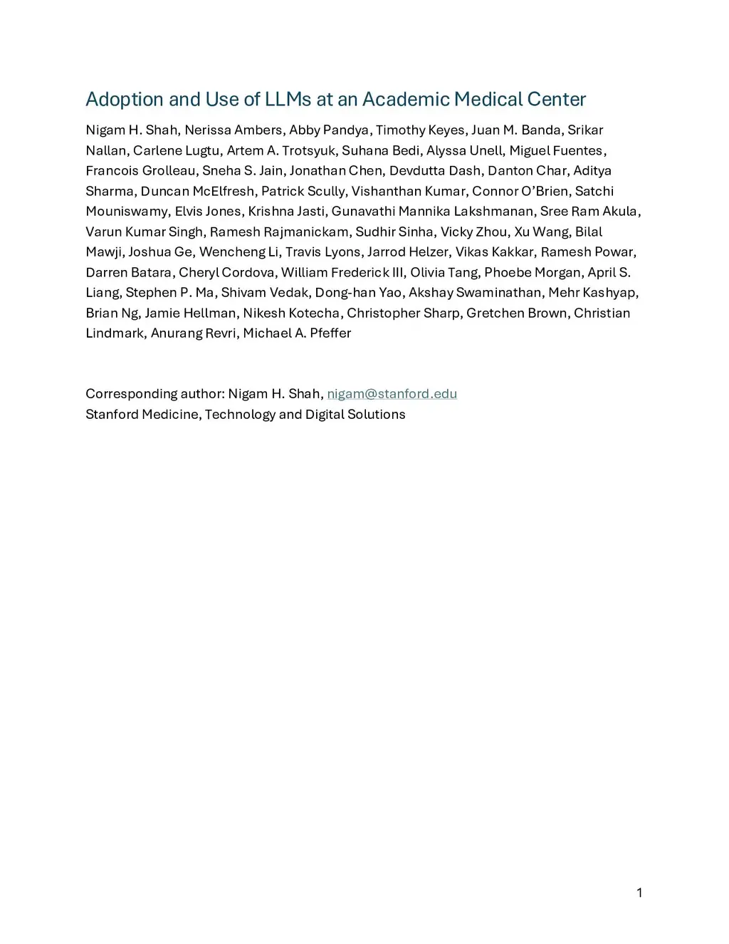 Adoption and Use of LLMs at an Academic Medical Center