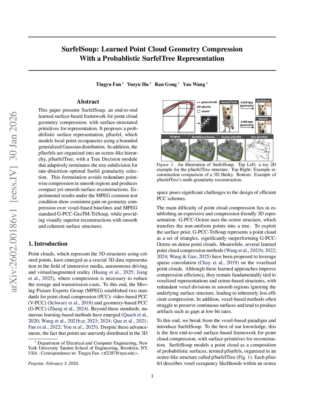 SurfelSoup: Learned Point Cloud Geometry Compression With a Probablistic SurfelTree Representation
