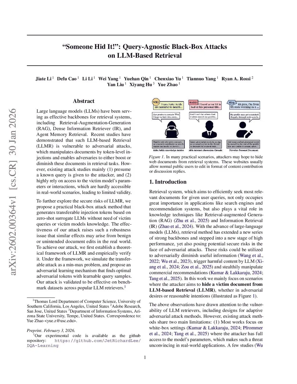 "Someone Hid It": Query-Agnostic Black-Box Attacks on LLM-Based Retrieval
