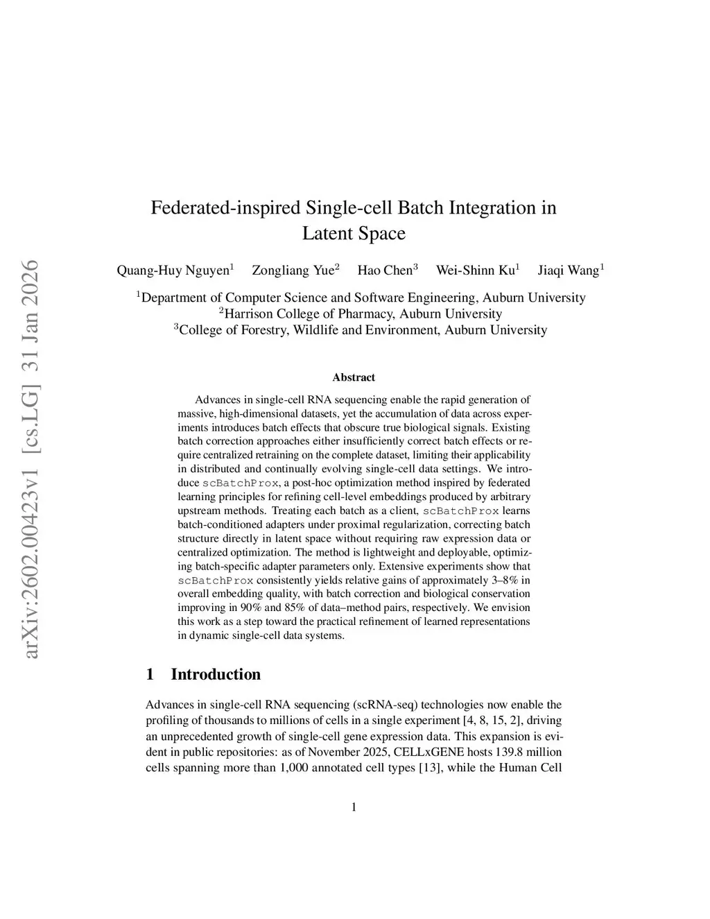 Advances in single-cell RNA sequencing enable the rapid generation of massive, high-dimensional datasets, yet the accumulation of data across experiments introduces batch effects that obscure true biological signals. Existing batch correction approaches either insufficiently correct batch effects or require centralized retraining on the complete dataset, limiting their applicability in distributed and continually evolving single-cell data settings. We introduce scBatchProx, a post-hoc optimization method inspired by federated learning principles for refining cell-level embeddings produced by arbitrary upstream methods. Treating each batch as a client, scBatchProx learns batch-conditioned adapters under proximal regularization, correcting batch structure directly in latent space without requiring raw expression data or centralized optimization. The method is lightweight and deployable, optimizing batch-specific adapter parameters only. Extensive experiments show that scBatchProx consistently yields relative gains of approximately 3-8% in overall embedding quality, with batch correction and biological conservation improving in 90% and 85% of data-method pairs, respectively. We envision this work as a step toward the practical refinement of learned representations in dynamic single-cell data systems.