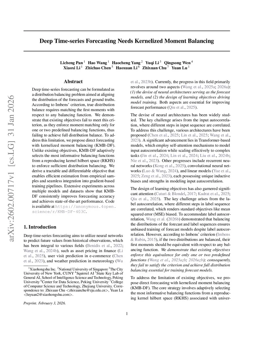Deep Time-series Forecasting Needs Kernelized Moment Balancing