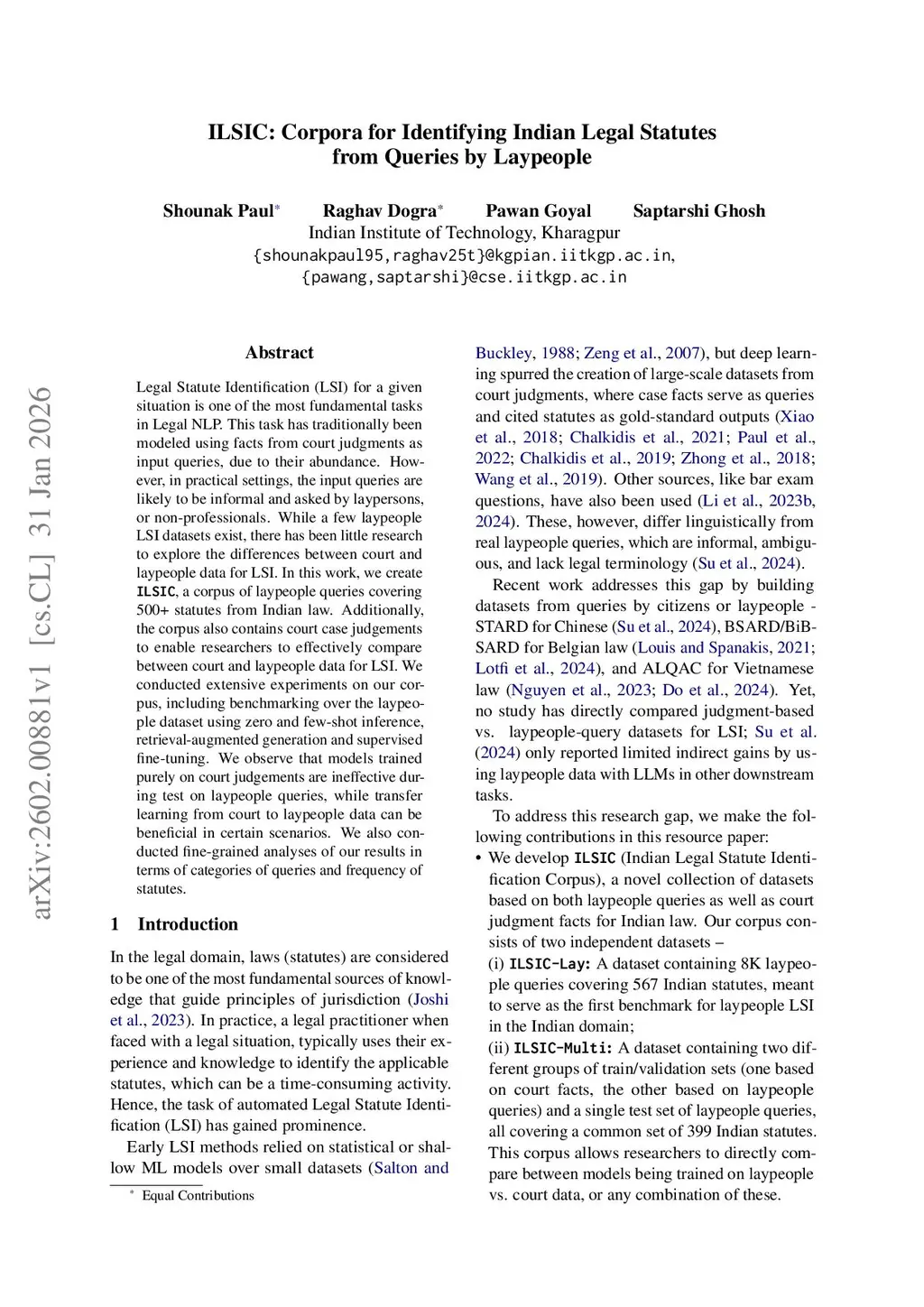 ILSIC: Corpora for Identifying Indian Legal Statutes from Queries by Laypeople