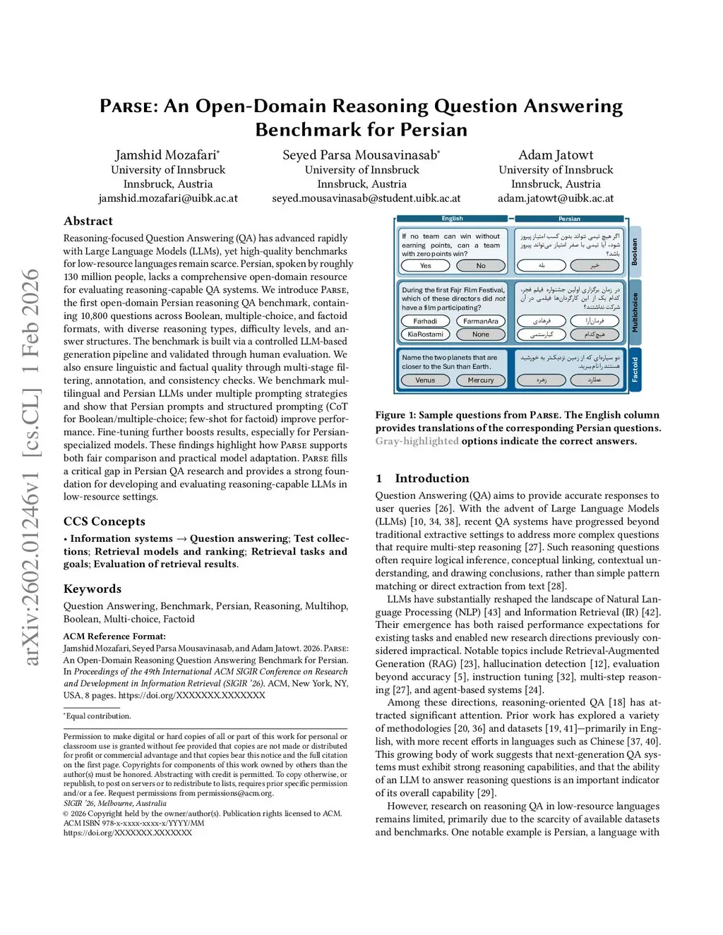 PARSE: An Open-Domain Reasoning Question Answering Benchmark for Persian