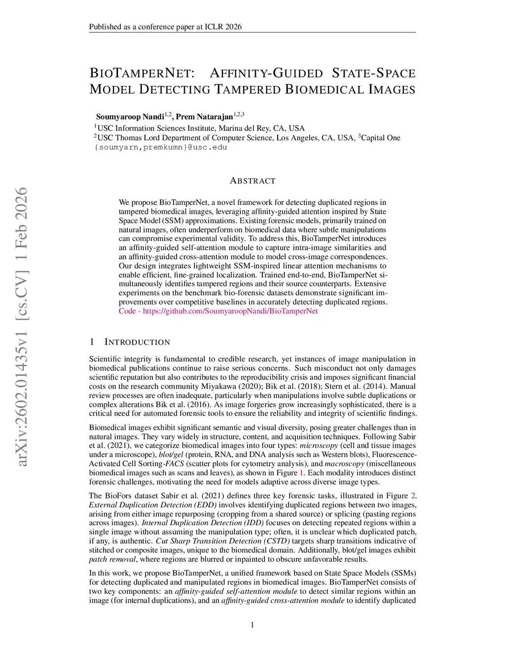 BioTamperNet: Affinity-Guided State-Space Model Detecting Tampered Biomedical Images