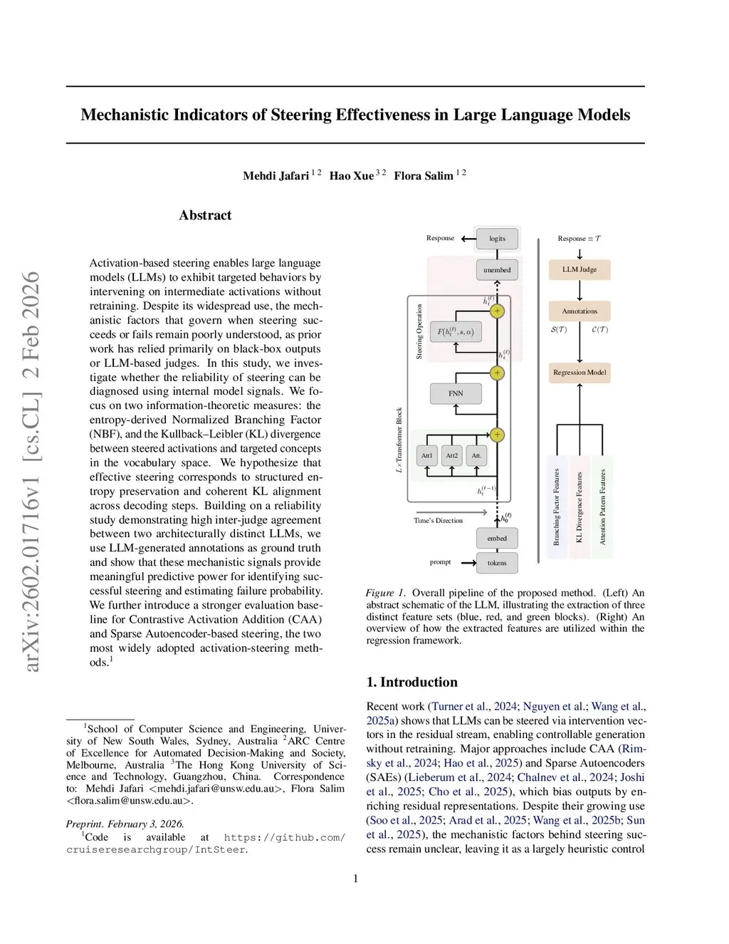 Activation-based steering enables Large Language Models (LLMs) to exhibit targeted behaviors by intervening on intermediate activations without retraining. Despite its widespread use, the mechanistic factors that govern when steering succeeds or fails remain poorly understood, as prior work has relied primarily on black-box outputs or LLM-based judges. In this study, we investigate whether the reliability of steering can be diagnosed using internal model signals. We focus on two information-theoretic measures: the entropy-derived Normalized Branching Factor (NBF), and the Kullback-Leibler (KL) divergence between steered activations and targeted concepts in the vocabulary space. We hypothesize that effective steering corresponds to structured entropy preservation and coherent KL alignment across decoding steps. Building on a reliability study demonstrating high inter-judge agreement between two architecturally distinct LLMs, we use LLM-generated annotations as ground truth and show that these mechanistic signals provide meaningful predictive power for identifying successful steering and estimating failure probability. We further introduce a stronger evaluation baseline for Contrastive Activation Addition (CAA) and Sparse Autoencoder-based steering, the two most widely adopted activation-steering methods.