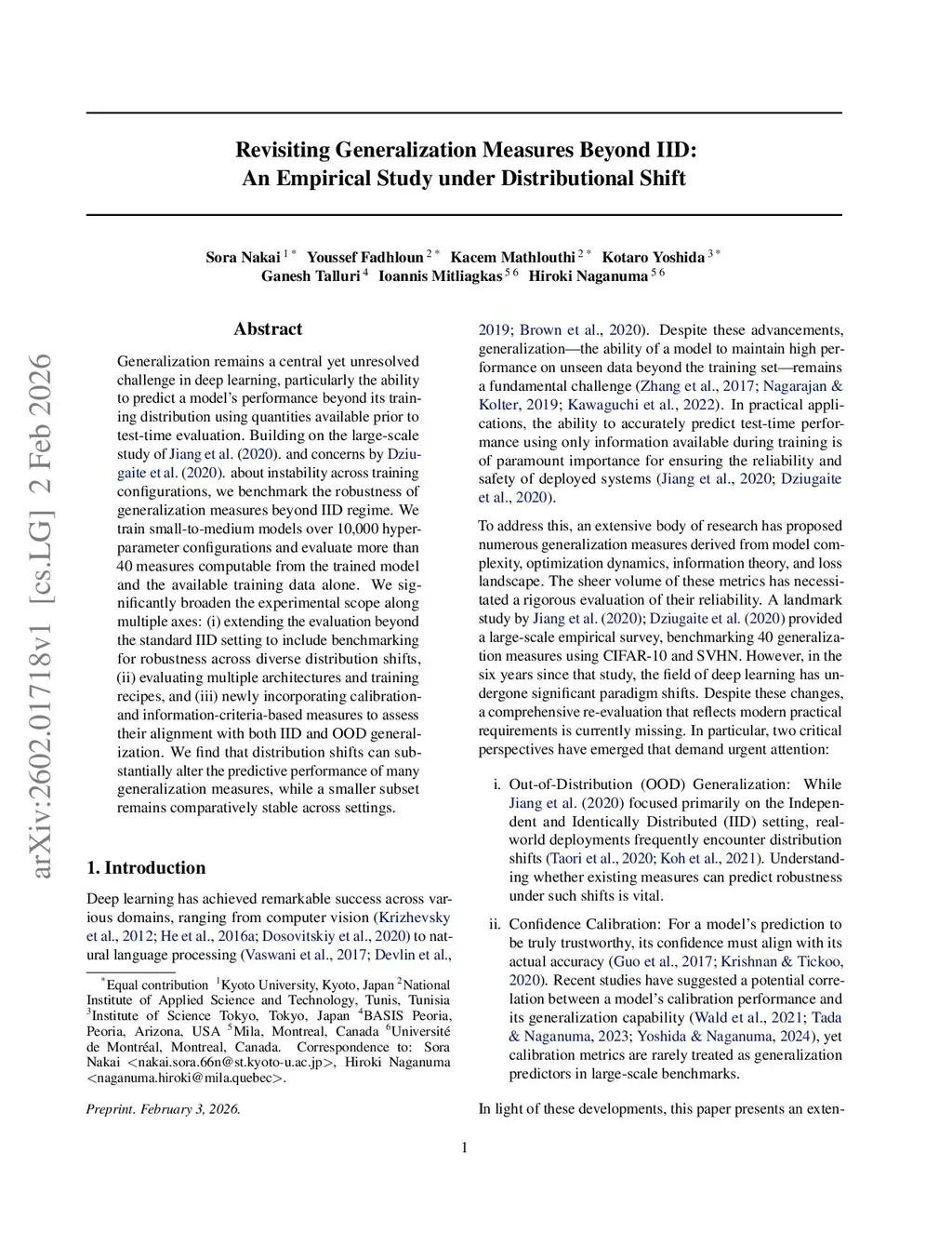 Generalization remains a central yet unresolved challenge in deep learning, particularly the ability to predict a model's performance beyond its training distribution using quantities available prior to test-time evaluation. Building on the large-scale study of Jiang et al. (2020). and concerns by Dziugaite et al. (2020). about instability across training configurations, we benchmark the robustness of generalization measures beyond IID regime. We train small-to-medium models over 10,000 hyperparameter configurations and evaluate more than 40 measures computable from the trained model and the available training data alone. We significantly broaden the experimental scope along multiple axes: (i) extending the evaluation beyond the standard IID setting to include benchmarking for robustness across diverse distribution shifts, (ii) evaluating multiple architectures and training recipes, and (iii) newly incorporating calibration- and information-criteria-based measures to assess their alignment with both IID and OOD generalization. We find that distribution shifts can substantially alter the predictive performance of many generalization measures, while a smaller subset remains comparatively stable across settings.