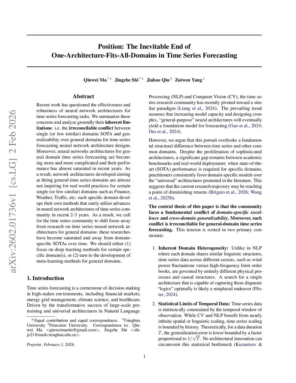 Position: The Inevitable End of One-Architecture-Fits-All-Domains in Time Series Forecasting