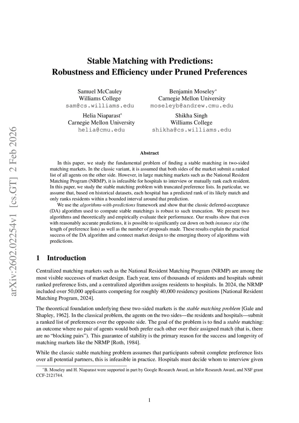 In this paper, we study the fundamental problem of finding a stable matching in two-sided matching markets. In the classic variant, it is assumed that both sides of the market submit a ranked list of all agents on the other side. However, in large matching markets such as the National Resident Matching Program (NRMP), it is infeasible for hospitals to interview or mutually rank each resident. In this paper, we study the stable matching problem with truncated preference lists. In particular, we assume that, based on historical datasets, each hospital has a predicted rank of its likely match and only ranks residents within a bounded interval around that prediction.We use the algorithms-with-predictions framework and show that the classic deferred-acceptance (DA) algorithm used to compute stable matchings is robust to such truncation. We present two algorithms and theoretically and empirically evaluate their performance. Our results show that even with reasonably accurate predictions, it is possible to significantly cut down on both instance size (the length of preference lists) as well as the number of proposals made. These results explain the practical success of the DA algorithm and connect market design to the emerging theory of algorithms with predictions.