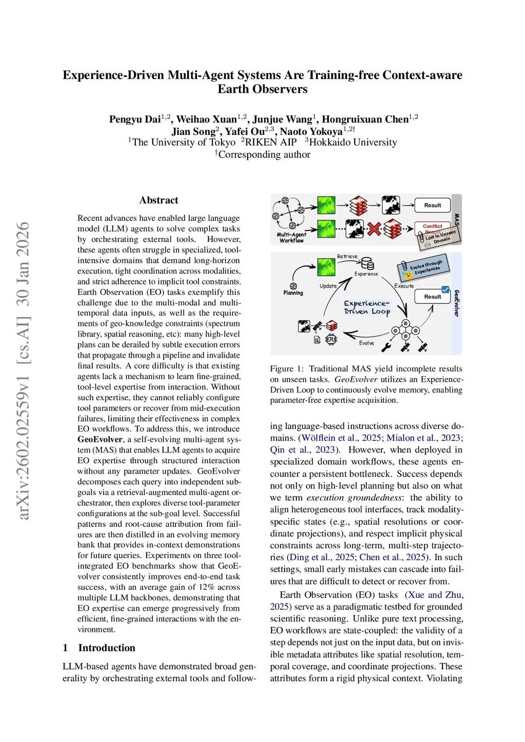 Experience-Driven Multi-Agent Systems Are Training-free Context-aware Earth Observers
