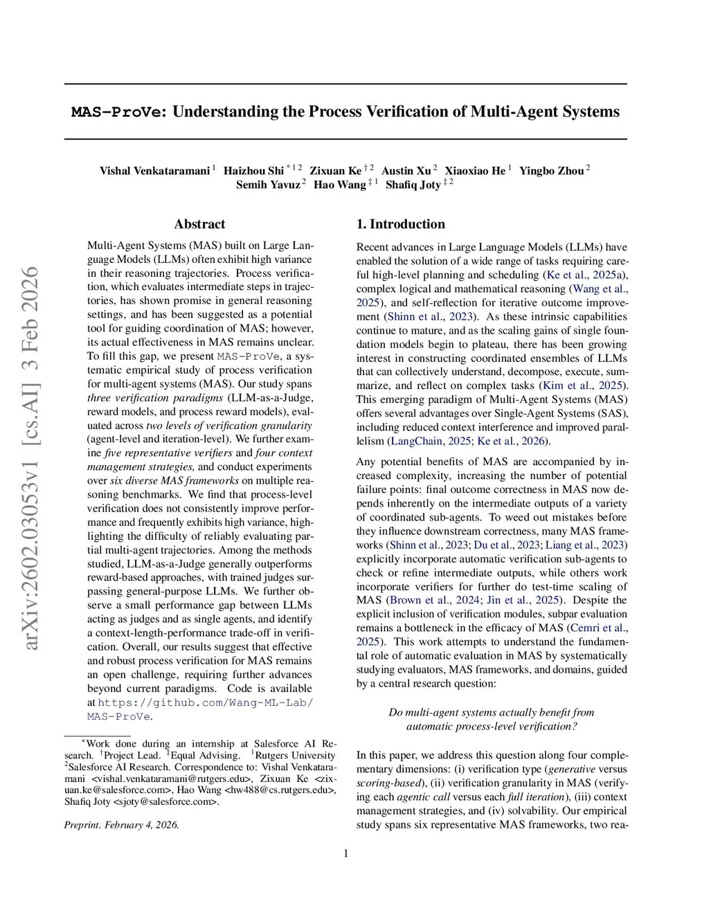 Multi-Agent Systems (MAS) built on Large Language Models (LLMs) often exhibit high variance in their reasoning trajectories. Process verification, which evaluates intermediate steps in trajectories, has shown promise in general reasoning settings, and has been suggested as a potential tool for guiding coordination of MAS; however, its actual effectiveness in MAS remains unclear. To fill this gap, we present MAS-ProVe, a systematic empirical study of process verification for multi-agent systems (MAS). Our study spans three verification paradigms (LLM-as-a-Judge, reward models, and process reward models), evaluated across two levels of verification granularity (agent-level and iteration-level). We further examine five representative verifiers and four context management strategies, and conduct experiments over six diverse MAS frameworks on multiple reasoning benchmarks. We find that process-level verification does not consistently improve performance and frequently exhibits high variance, highlighting the difficulty of reliably evaluating partial multi-agent trajectories. Among the methods studied, LLM-as-a-Judge generally outperforms reward-based approaches, with trained judges surpassing general-purpose LLMs. We further observe a small performance gap between LLMs acting as judges and as single agents, and identify a context-length-performance trade-off in verification. Overall, our results suggest that effective and robust process verification for MAS remains an open challenge, requiring further advances beyond current paradigms. Code is available atthis https URL.