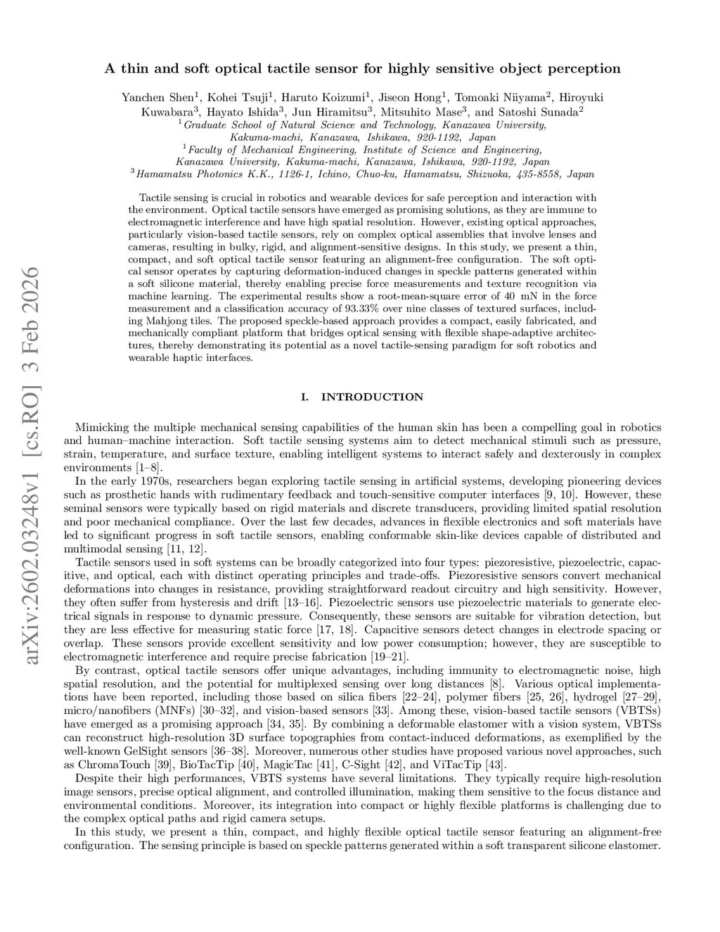 A thin and soft optical tactile sensor for highly sensitive object perception