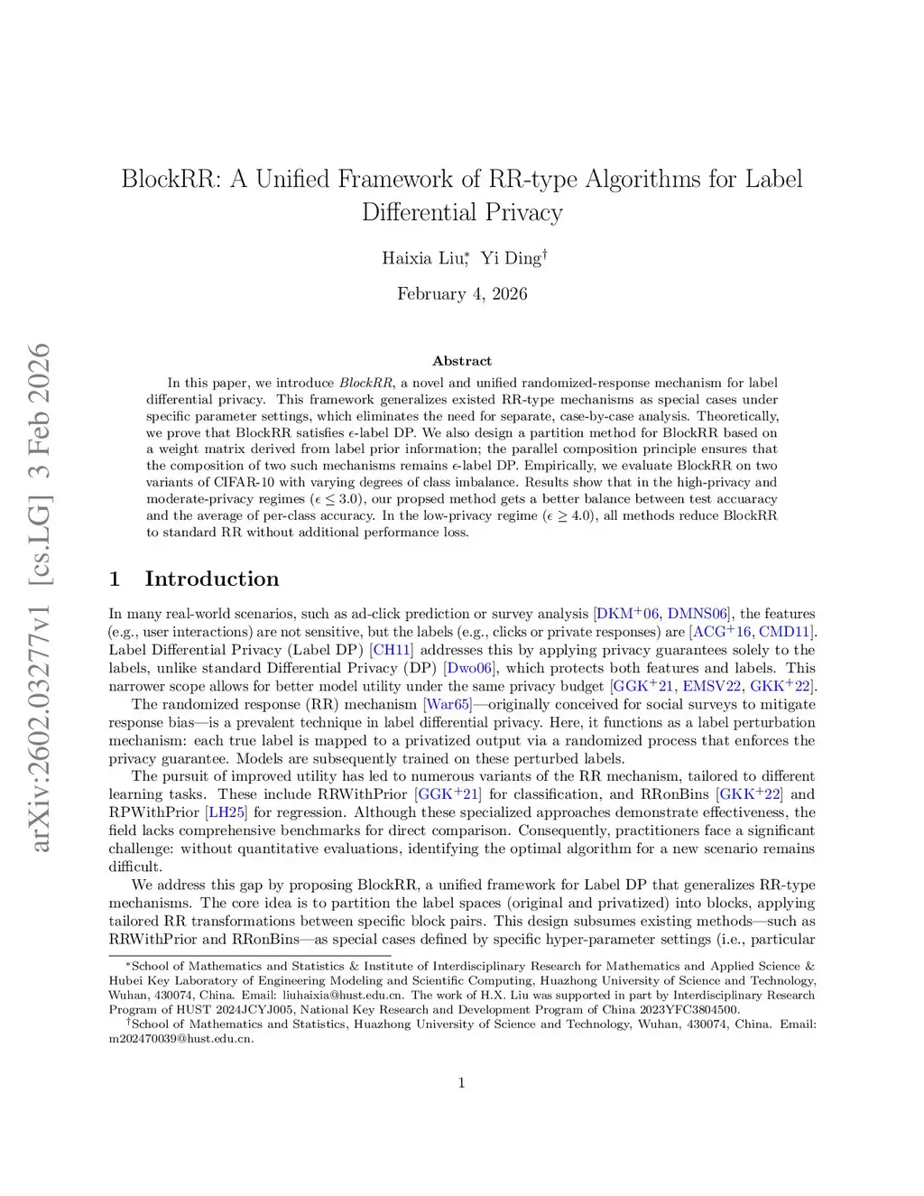 In this paper, we introduce BlockRR, a novel and unified randomized-response mechanism for label differential privacy. This framework generalizes existed RR-type mechanisms as special cases under specific parameter settings, which eliminates the need for separate, case-by-case analysis. Theoretically, we prove that BlockRR satisfies -label DP. We also design a partition method for BlockRR based on a weight matrix derived from label prior information; the parallel composition principle ensures that the composition of two such mechanisms remains -label DP. Empirically, we evaluate BlockRR on two variants of CIFAR-10 with varying degrees of class imbalance. Results show that in the high-privacy and moderate-privacy regimes (), our propsed method gets a better balance between test accuaracy and the average of per-class accuracy. In the low-privacy regime (), all methods reduce BlockRR to standard RR without additional performance loss.