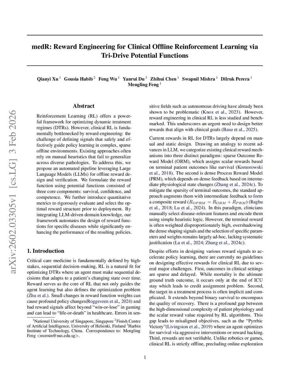 medR: Reward Engineering for Clinical Offline Reinforcement Learning via Tri-Drive Potential Functions