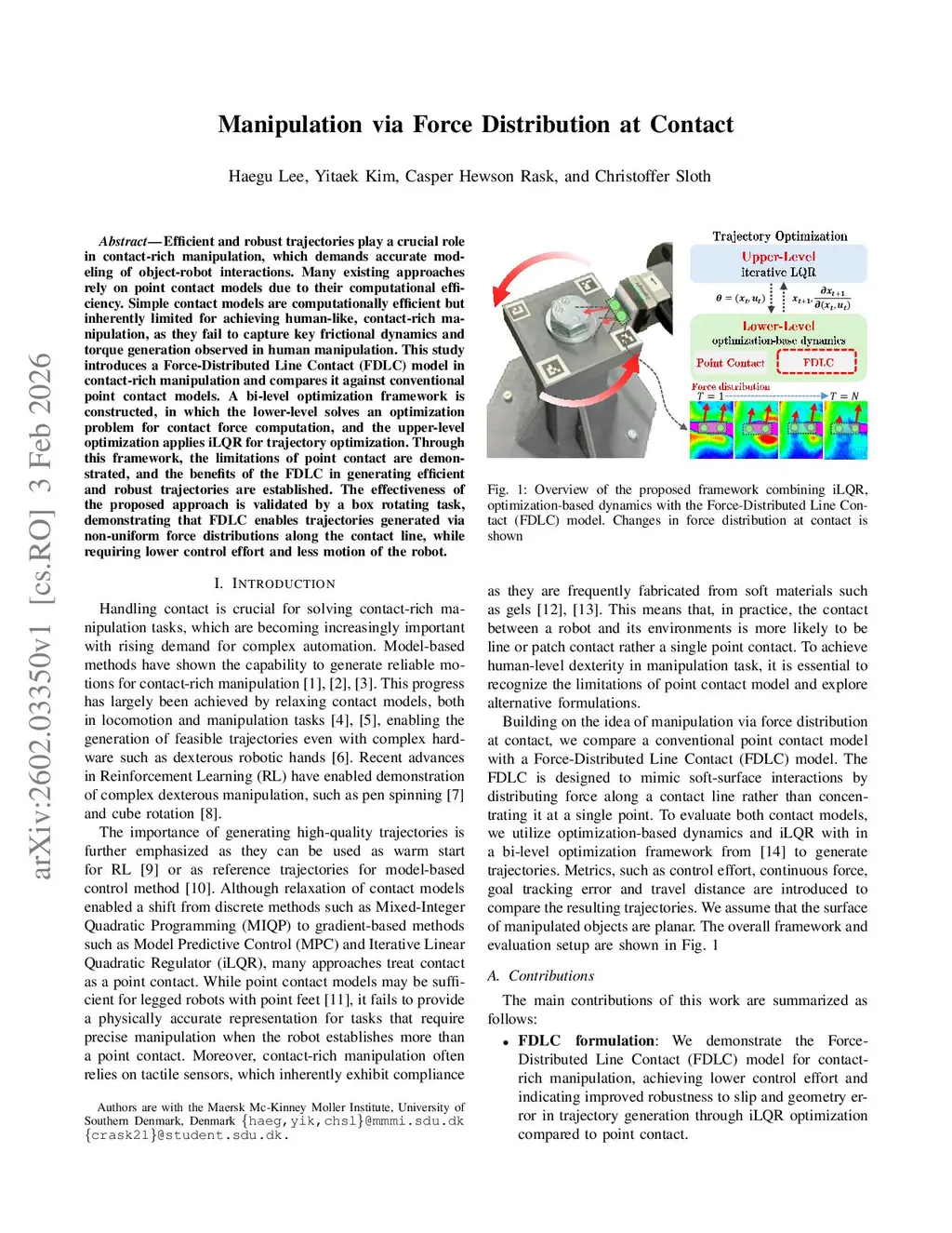 Efficient and robust trajectories play a crucial role in contact-rich manipulation, which demands accurate mod- eling of object-robot interactions. Many existing approaches rely on point contact models due to their computational effi- ciency. Simple contact models are computationally efficient but inherently limited for achieving human-like, contact-rich ma- nipulation, as they fail to capture key frictional dynamics and torque generation observed in human manipulation. This study introduces a Force-Distributed Line Contact (FDLC) model in contact-rich manipulation and compares it against conventional point contact models. A bi-level optimization framework is constructed, in which the lower-level solves an optimization problem for contact force computation, and the upper-level optimization applies iLQR for trajectory optimization. Through this framework, the limitations of point contact are demon- strated, and the benefits of the FDLC in generating efficient and robust trajectories are established. The effectiveness of the proposed approach is validated by a box rotating task, demonstrating that FDLC enables trajectories generated via non-uniform force distributions along the contact line, while requiring lower control effort and less motion of the robot.