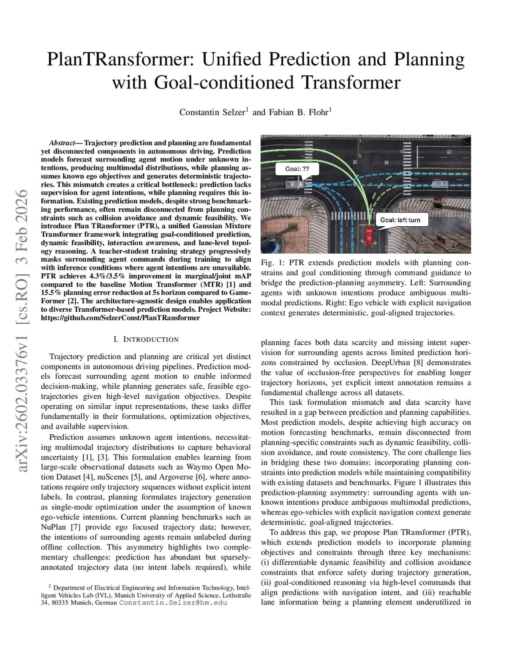 Trajectory prediction and planning are fundamental yet disconnected components in autonomous driving. Prediction models forecast surrounding agent motion under unknown intentions, producing multimodal distributions, while planning assumes known ego objectives and generates deterministic trajectories. This mismatch creates a critical bottleneck: prediction lacks supervision for agent intentions, while planning requires this information. Existing prediction models, despite strong benchmarking performance, often remain disconnected from planning constraints such as collision avoidance and dynamic feasibility. We introduce Plan TRansformer (PTR), a unified Gaussian Mixture Transformer framework integrating goal-conditioned prediction, dynamic feasibility, interaction awareness, and lane-level topology reasoning. A teacher-student training strategy progressively masks surrounding agent commands during training to align with inference conditions where agent intentions are unavailable. PTR achieves 4.3%/3.5% improvement in marginal/joint mAP compared to the baseline Motion Transformer (MTR) and 15.5% planning error reduction at 5s horizon compared to GameFormer. The architecture-agnostic design enables application to diverse Transformer-based prediction models. Project Website:this https URL
