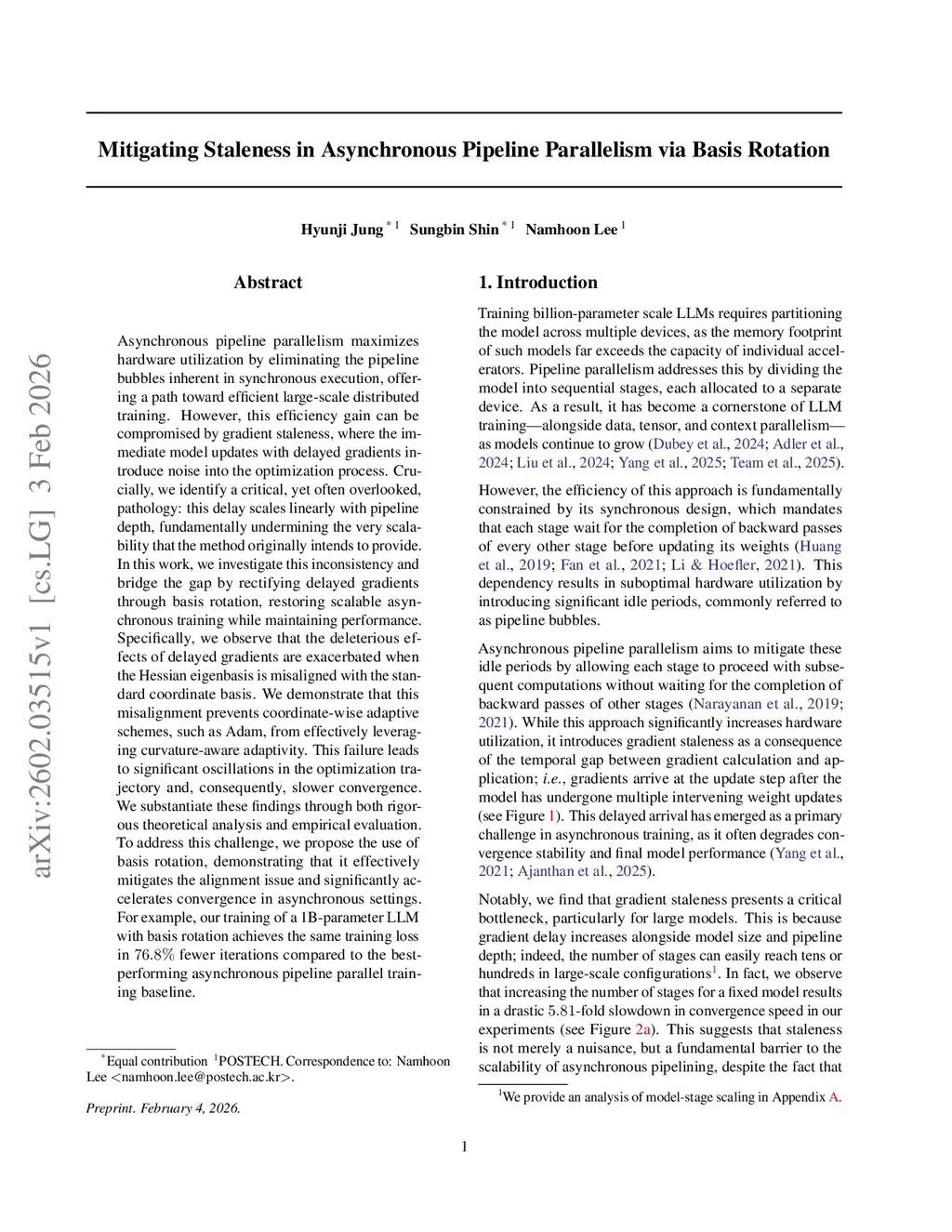 Mitigating Staleness in Asynchronous Pipeline Parallelism via Basis Rotation