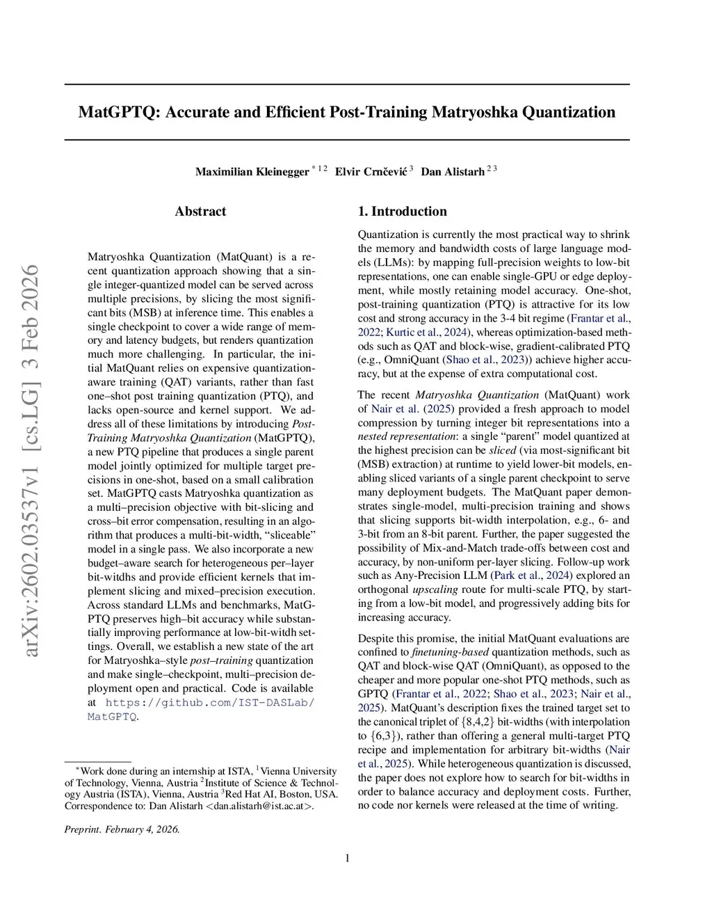 MatGPTQ: Accurate and Efficient Post-Training Matryoshka Quantization