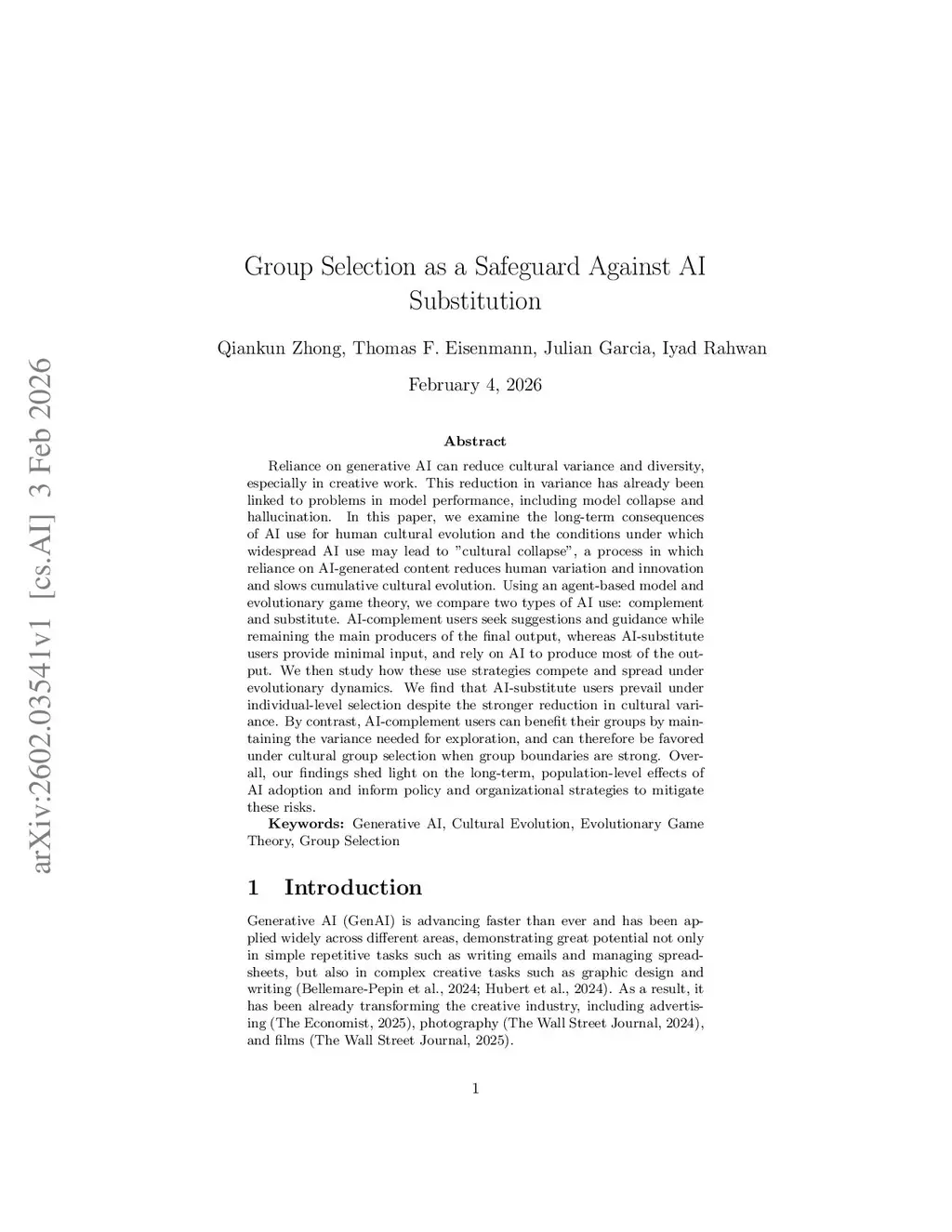 Group Selection as a Safeguard Against AI Substitution