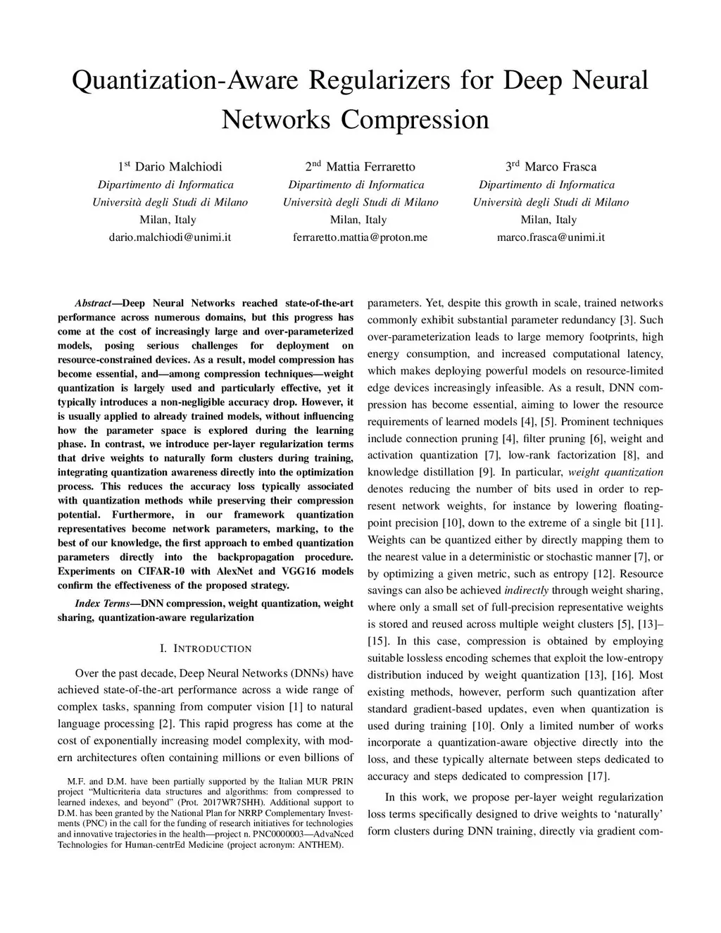 Quantization-Aware Regularizers for Deep Neural Networks Compression