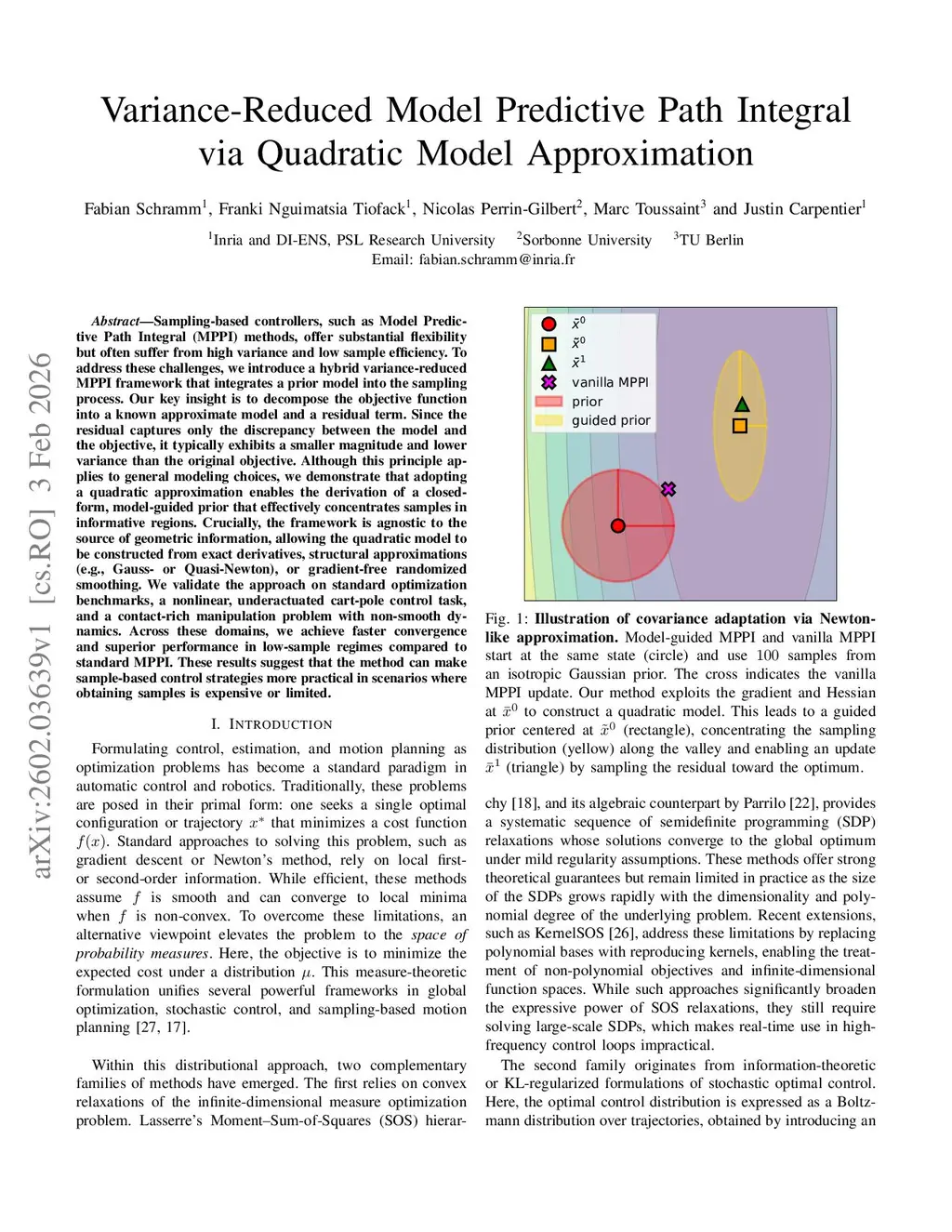 Sampling-based controllers, such as Model Predictive Path Integral (MPPI) methods, offer substantial flexibility but often suffer from high variance and low sample efficiency. To address these challenges, we introduce a hybrid variance-reduced MPPI framework that integrates a prior model into the sampling process. Our key insight is to decompose the objective function into a known approximate model and a residual term. Since the residual captures only the discrepancy between the model and the objective, it typically exhibits a smaller magnitude and lower variance than the original objective. Although this principle applies to general modeling choices, we demonstrate that adopting a quadratic approximation enables the derivation of a closed-form, model-guided prior that effectively concentrates samples in informative regions. Crucially, the framework is agnostic to the source of geometric information, allowing the quadratic model to be constructed from exact derivatives, structural approximations (e.g., Gauss- or Quasi-Newton), or gradient-free randomized smoothing. We validate the approach on standard optimization benchmarks, a nonlinear, underactuated cart-pole control task, and a contact-rich manipulation problem with non-smooth dynamics. Across these domains, we achieve faster convergence and superior performance in low-sample regimes compared to standard MPPI. These results suggest that the method can make sample-based control strategies more practical in scenarios where obtaining samples is expensive or limited.