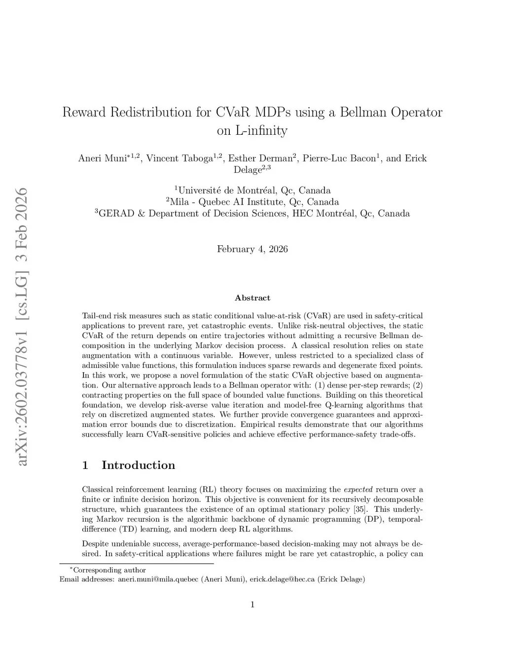 Tail-end risk measures such as static conditional value-at-risk (CVaR) are used in safety-critical applications to prevent rare, yet catastrophic events. Unlike risk-neutral objectives, the static CVaR of the return depends on entire trajectories without admitting a recursive Bellman decomposition in the underlying Markov decision process. A classical resolution relies on state augmentation with a continuous variable. However, unless restricted to a specialized class of admissible value functions, this formulation induces sparse rewards and degenerate fixed points. In this work, we propose a novel formulation of the static CVaR objective based on augmentation. Our alternative approach leads to a Bellman operator with: (1) dense per-step rewards; (2) contracting properties on the full space of bounded value functions. Building on this theoretical foundation, we develop risk-averse value iteration and model-free Q-learning algorithms that rely on discretized augmented states. We further provide convergence guarantees and approximation error bounds due to discretization. Empirical results demonstrate that our algorithms successfully learn CVaR-sensitive policies and achieve effective performance-safety trade-offs.
