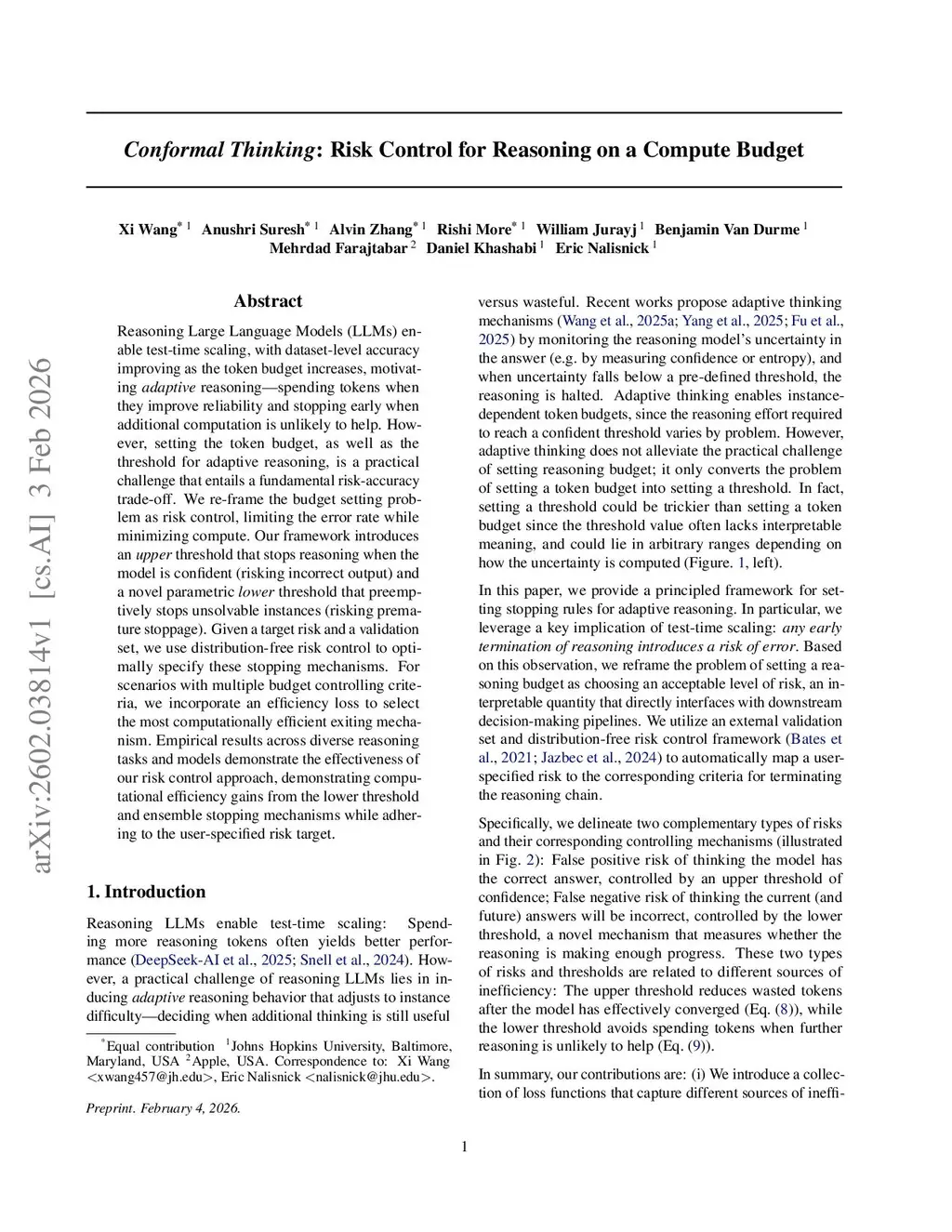 Conformal Thinking: Risk Control for Reasoning on a Compute Budget