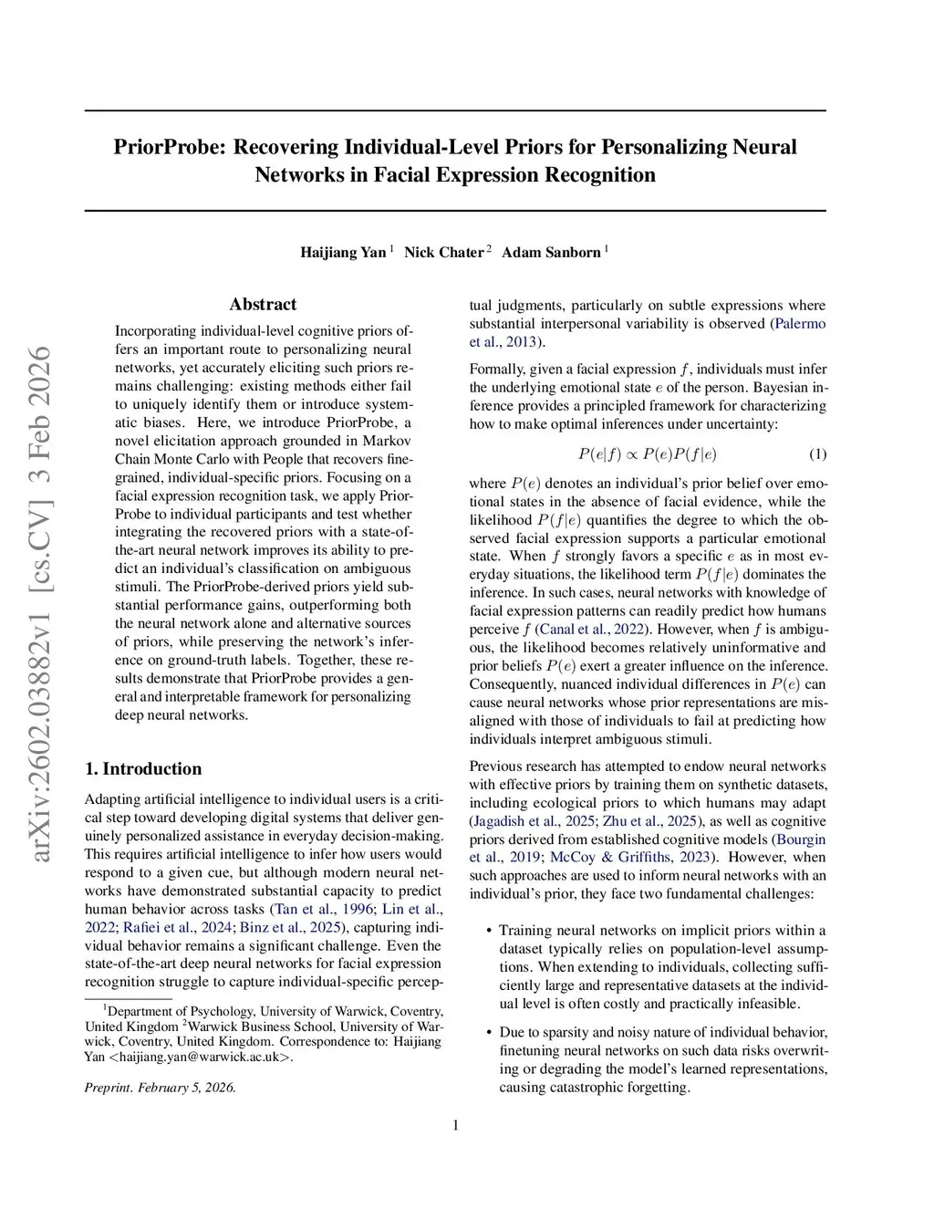 PriorProbe: Recovering Individual-Level Priors for Personalizing Neural Networks in Facial Expression Recognition