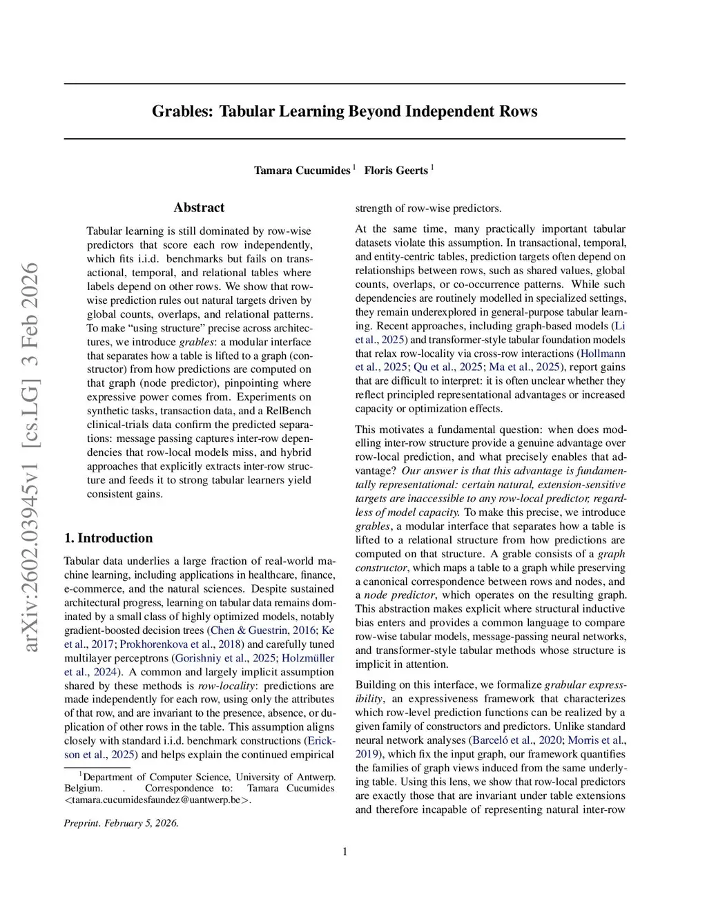 Grables: Tabular Learning Beyond Independent Rows
