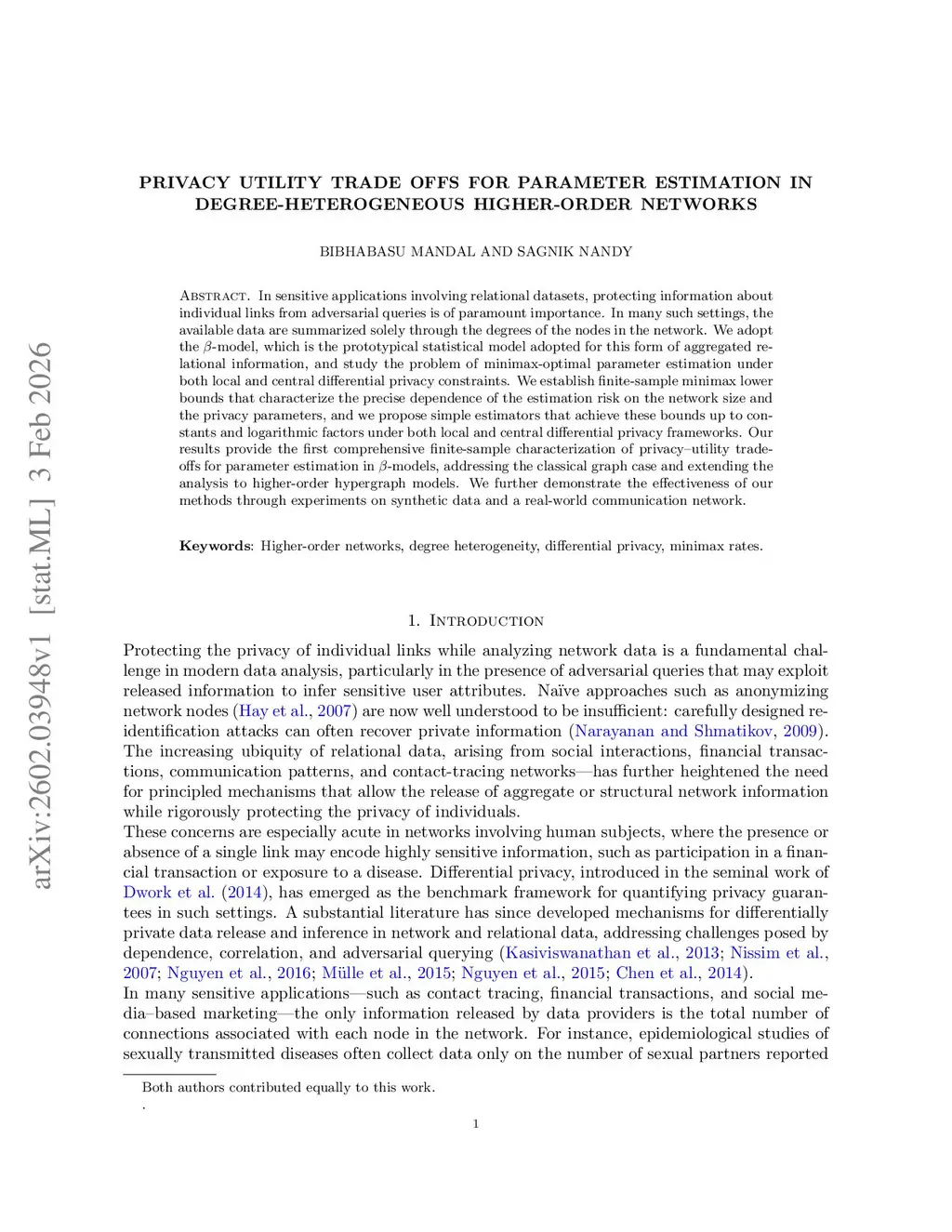 In sensitive applications involving relational datasets, protecting information about individual links from adversarial queries is of paramount importance. In many such settings, the available data are summarized solely through the degrees of the nodes in the network. We adopt the model, which is the prototypical statistical model adopted for this form of aggregated relational information, and study the problem of minimax-optimal parameter estimation under both local and central differential privacy constraints. We establish finite sample minimax lower bounds that characterize the precise dependence of the estimation risk on the network size and the privacy parameters, and we propose simple estimators that achieve these bounds up to constants and logarithmic factors under both local and central differential privacy frameworks. Our results provide the first comprehensive finite sample characterization of privacy utility trade offs for parameter estimation in models, addressing the classical graph case and extending the analysis to higher order hypergraph models. We further demonstrate the effectiveness of our methods through experiments on synthetic data and a real world communication network.
