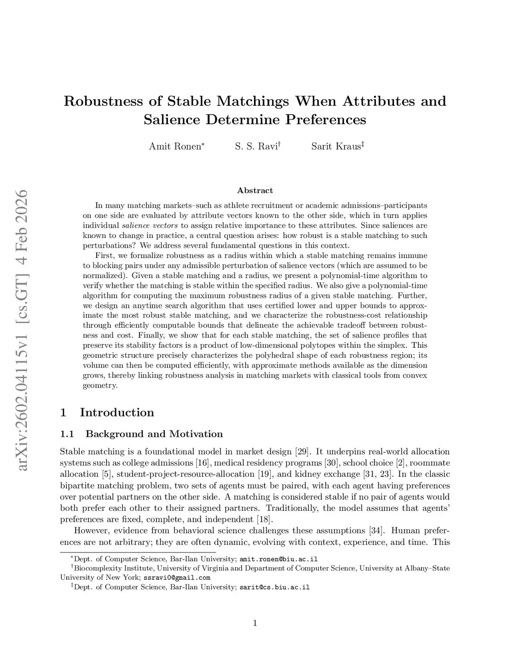 In many matching markets--such as athlete recruitment or academic admissions--participants on one side are evaluated by attribute vectors known to the other side, which in turn applies individual \emph{salience vectors} to assign relative importance to these attributes. Since saliences are known to change in practice, a central question arises: how robust is a stable matching to such perturbations? We address several fundamental questions in this context.First, we formalize robustness as a radius within which a stable matching remains immune to blocking pairs under any admissible perturbation of salience vectors (which are assumed to be normalized). Given a stable matching and a radius, we present a polynomial-time algorithm to verify whether the matching is stable within the specified radius. We also give a polynomial-time algorithm for computing the maximum robustness radius of a given stable matching. Further, we design an anytime search algorithm that uses certified lower and upper bounds to approximate the most robust stable matching, and we characterize the robustness-cost relationship through efficiently computable bounds that delineate the achievable tradeoff between robustness and cost. Finally, we show that for each stable matching, the set of salience profiles that preserve its stability factors is a product of low-dimensional polytopes within the simplex. This geometric structure precisely characterizes the polyhedral shape of each robustness region; its volume can then be computed efficiently, with approximate methods available as the dimension grows, thereby linking robustness analysis in matching markets with classical tools from convex geometry.