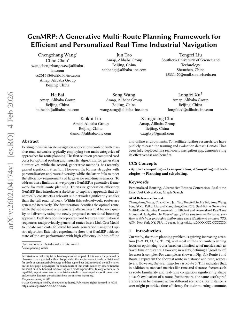 GenMRP: A Generative Multi-Route Planning Framework for Efficient and Personalized Real-Time Industrial Navigation