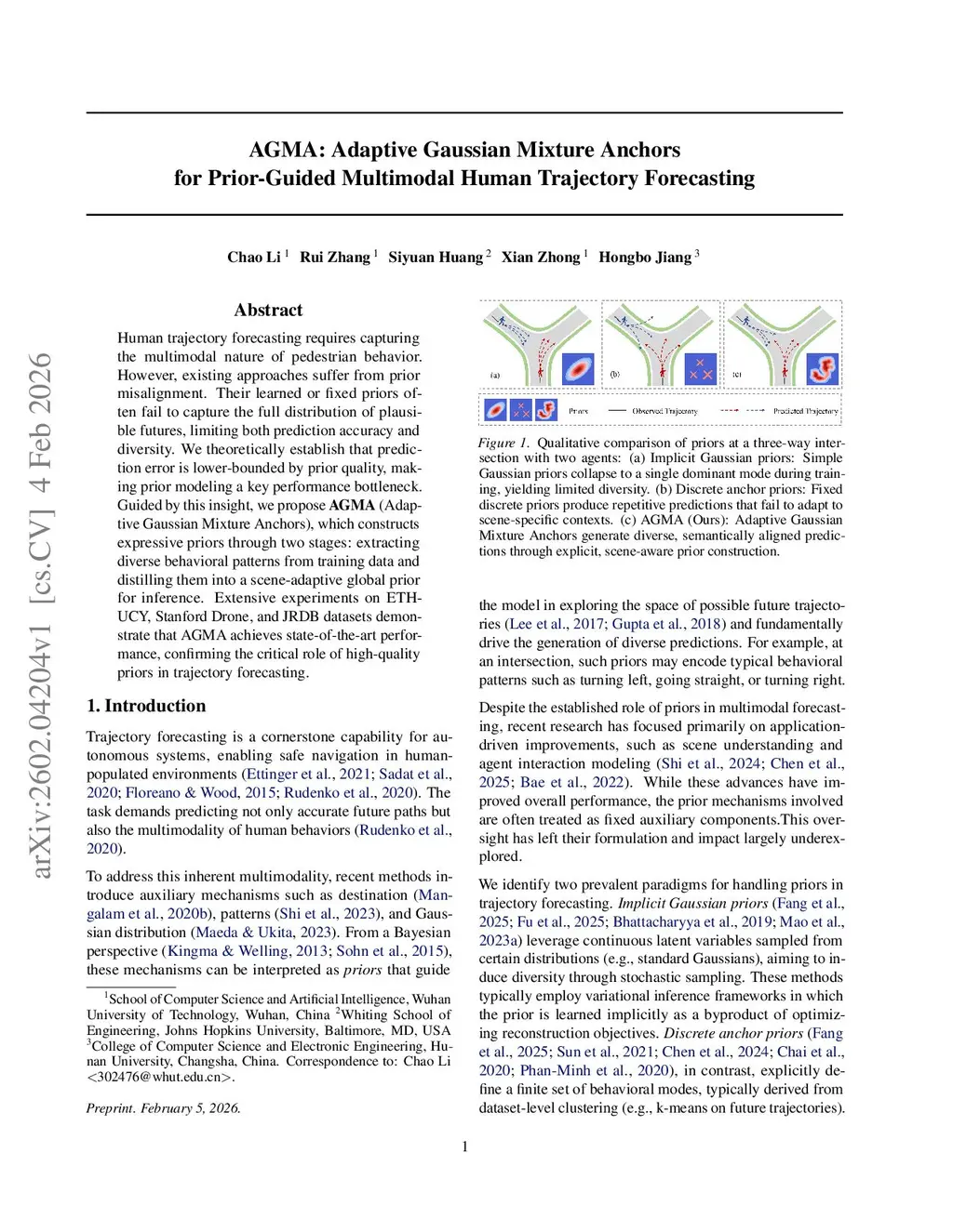 AGMA: Adaptive Gaussian Mixture Anchors for Prior-Guided Multimodal Human Trajectory Forecasting