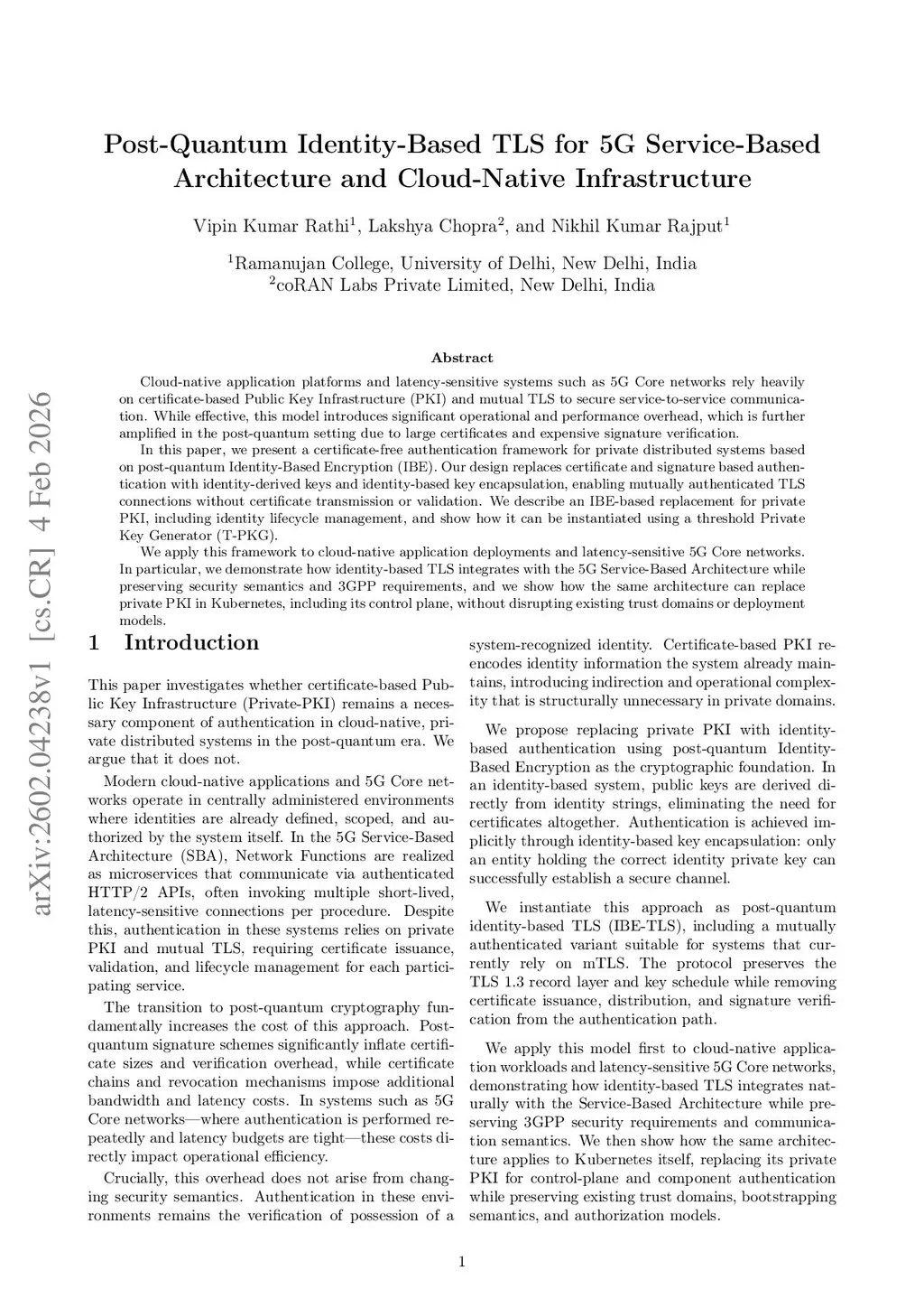 Post-Quantum Identity-Based TLS for 5G Service-Based Architecture and Cloud-Native Infrastructure