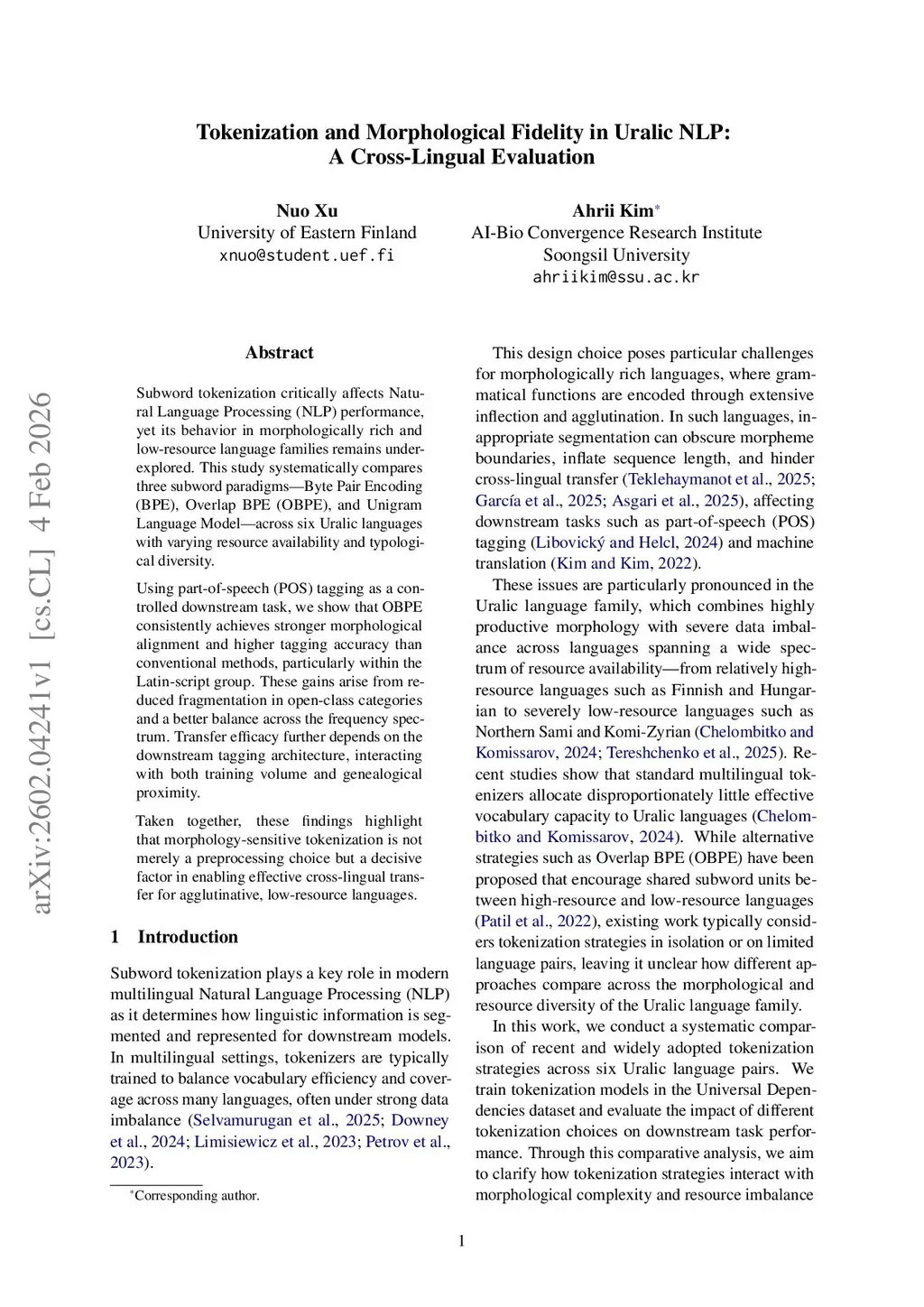 Subword tokenization critically affects Natural Language Processing (NLP) performance, yet its behavior in morphologically rich and low-resource language families remains under-explored. This study systematically compares three subword paradigms -- Byte Pair Encoding (BPE), Overlap BPE (OBPE), and Unigram Language Model -- across six Uralic languages with varying resource availability and typological diversity. Using part-of-speech (POS) tagging as a controlled downstream task, we show that OBPE consistently achieves stronger morphological alignment and higher tagging accuracy than conventional methods, particularly within the Latin-script group. These gains arise from reduced fragmentation in open-class categories and a better balance across the frequency spectrum. Transfer efficacy further depends on the downstream tagging architecture, interacting with both training volume and genealogical proximity. Taken together, these findings highlight that morphology-sensitive tokenization is not merely a preprocessing choice but a decisive factor in enabling effective cross-lingual transfer for agglutinative, low-resource languages.