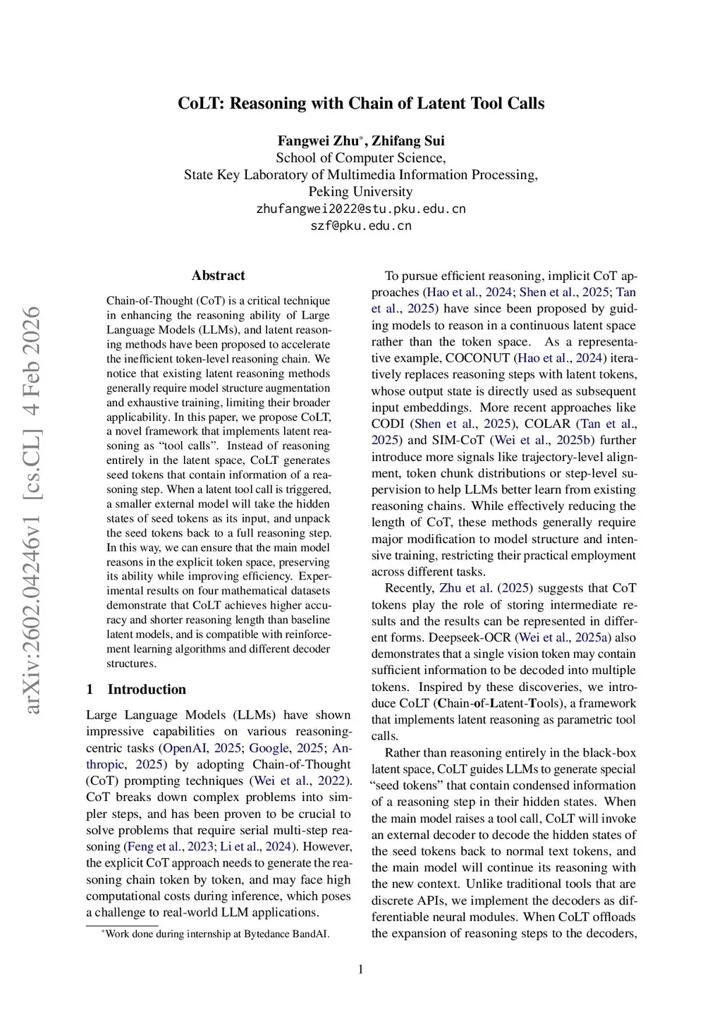 CoLT: Reasoning with Chain of Latent Tool Calls