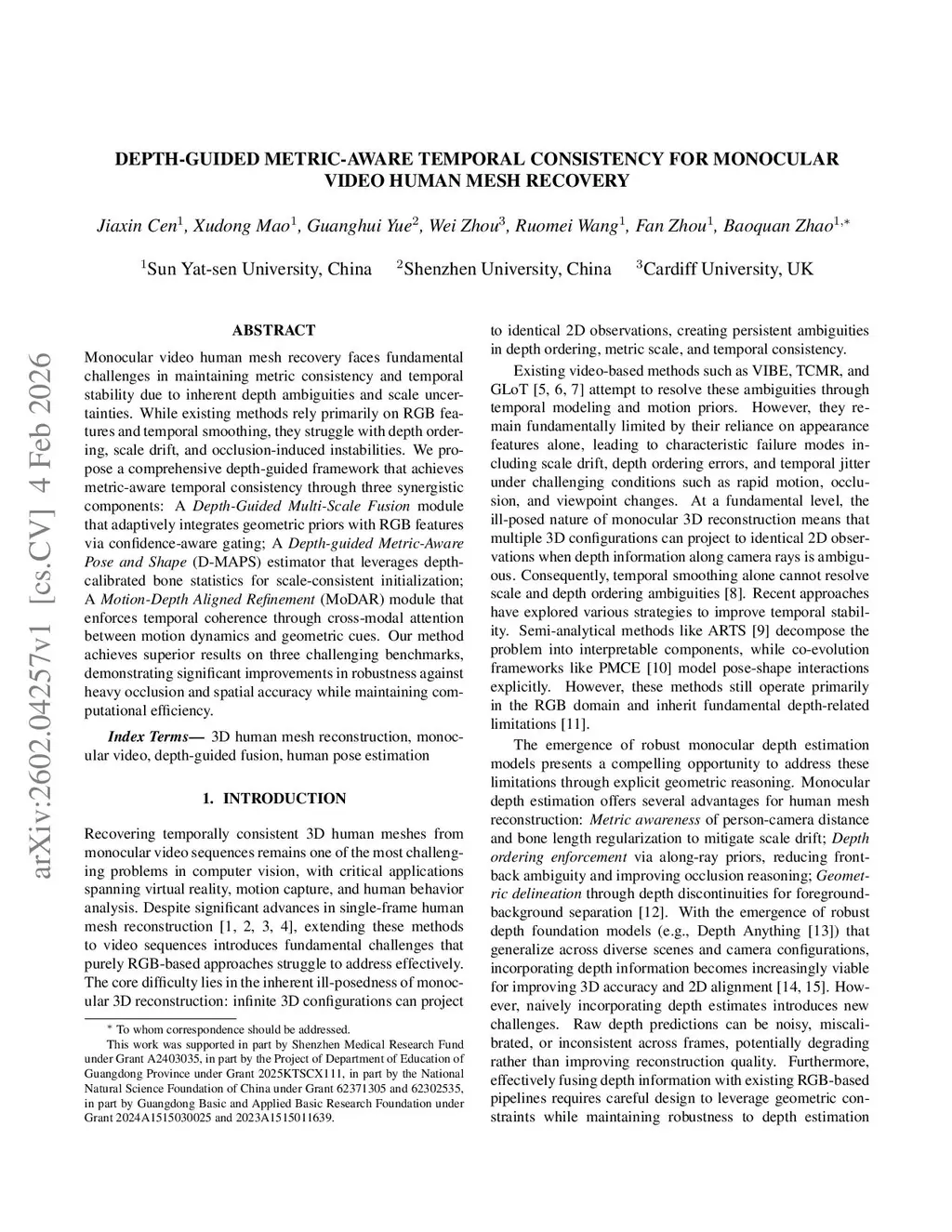 Monocular video human mesh recovery faces fundamental challenges in maintaining metric consistency and temporal stability due to inherent depth ambiguities and scale uncertainties. While existing methods rely primarily on RGB features and temporal smoothing, they struggle with depth ordering, scale drift, and occlusion-induced instabilities. We propose a comprehensive depth-guided framework that achieves metric-aware temporal consistency through three synergistic components: A Depth-Guided Multi-Scale Fusion module that adaptively integrates geometric priors with RGB features via confidence-aware gating; A Depth-guided Metric-Aware Pose and Shape (D-MAPS) estimator that leverages depth-calibrated bone statistics for scale-consistent initialization; A Motion-Depth Aligned Refinement (MoDAR) module that enforces temporal coherence through cross-modal attention between motion dynamics and geometric cues. Our method achieves superior results on three challenging benchmarks, demonstrating significant improvements in robustness against heavy occlusion and spatial accuracy while maintaining computational efficiency.