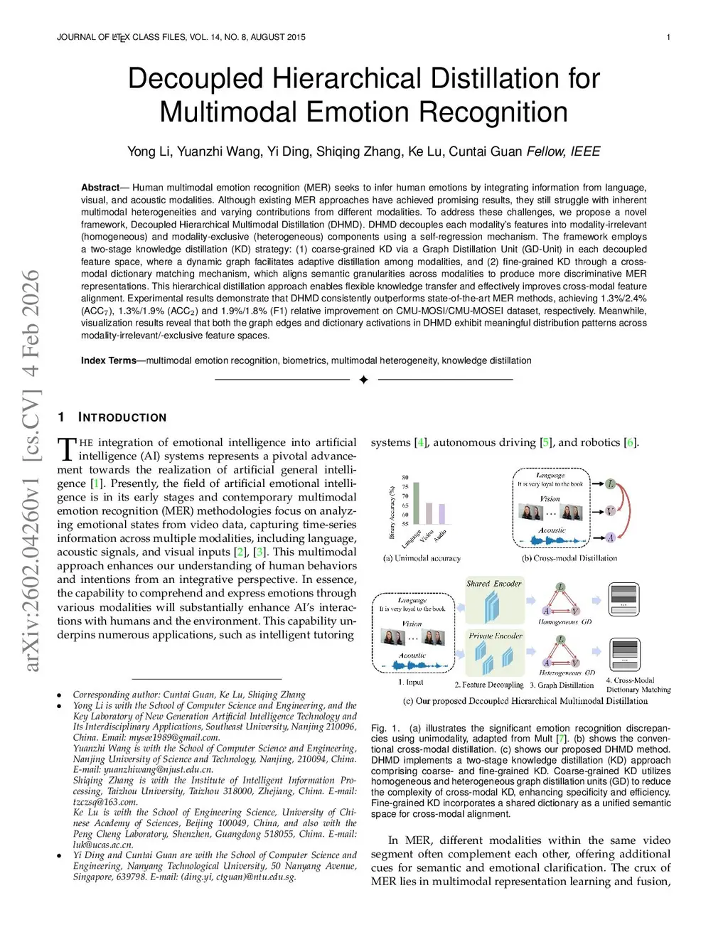 Decoupled Hierarchical Distillation for Multimodal Emotion Recognition