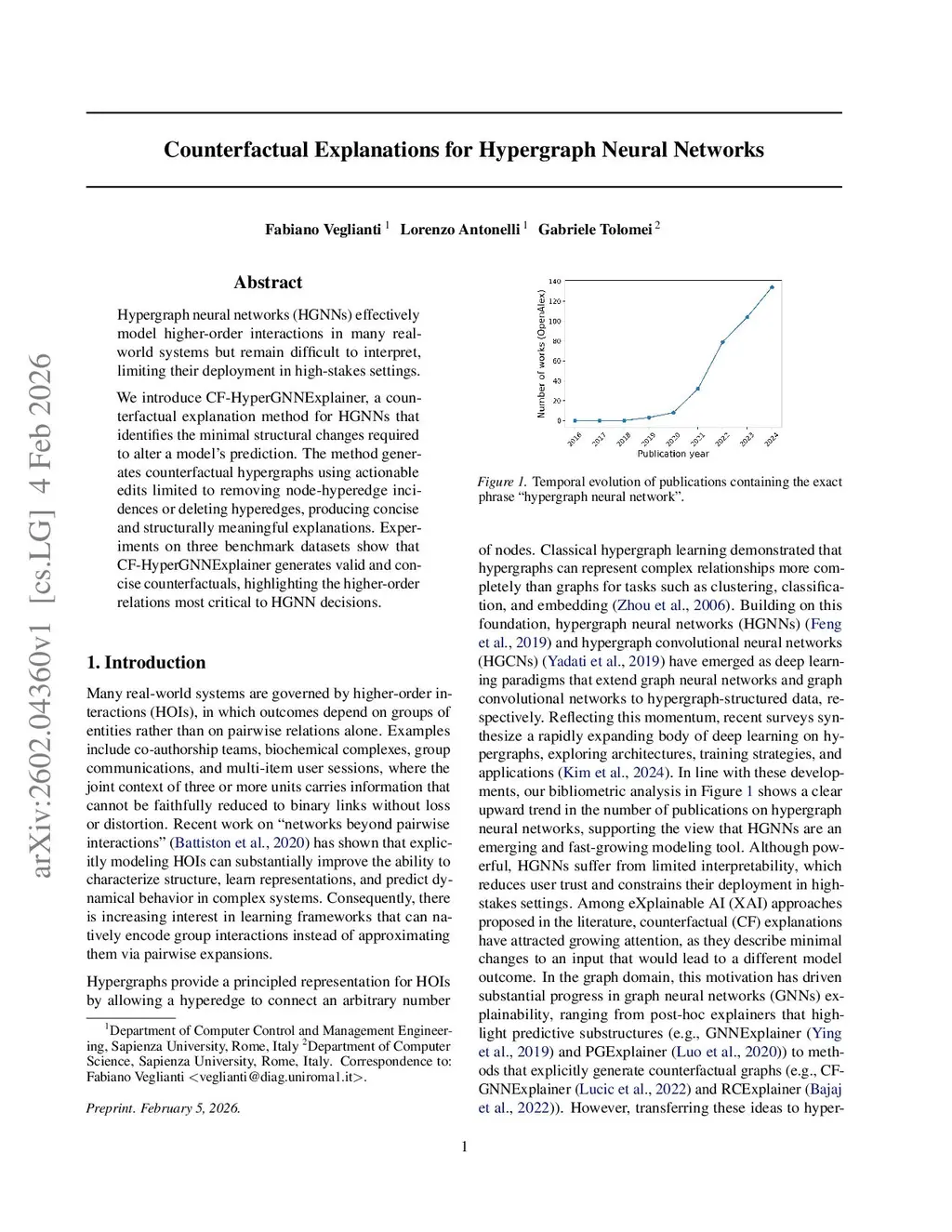 Hypergraph neural networks (HGNNs) effectively model higher-order interactions in many real-world systems but remain difficult to interpret, limiting their deployment in high-stakes settings.We introduce CF-HyperGNNExplainer, a counterfactual explanation method for HGNNs that identifies the minimal structural changes required to alter a model's prediction. The method generates counterfactual hypergraphs using actionable edits limited to removing node-hyperedge incidences or deleting hyperedges, producing concise and structurally meaningful explanations. Experiments on three benchmark datasets show that CF-HyperGNNExplainer generates valid and concise counterfactuals, highlighting the higher-order relations most critical to HGNN decisions.