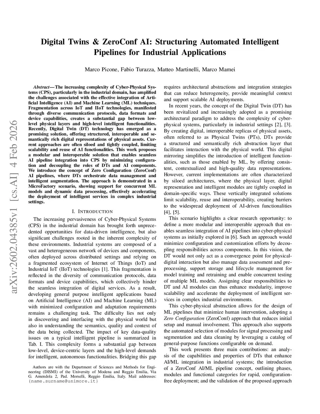 Digital Twins & ZeroConf AI: Structuring Automated Intelligent Pipelines for Industrial Applications