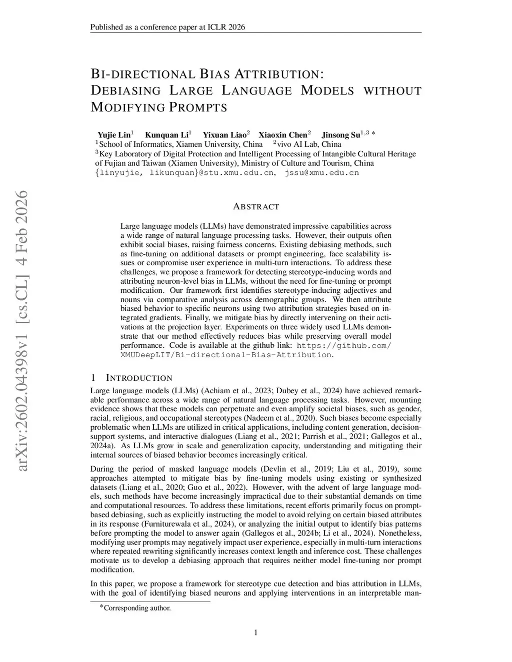 Bi-directional Bias Attribution: Debiasing Large Language Models without Modifying Prompts