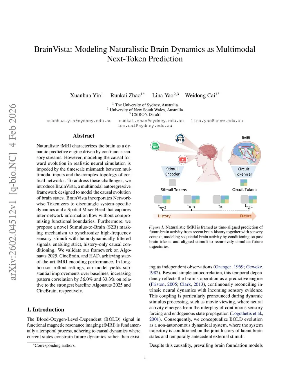 Naturalistic fMRI characterizes the brain as a dynamic predictive engine driven by continuous sensory streams. However, modeling the causal forward evolution in realistic neural simulation is impeded by the timescale mismatch between multimodal inputs and the complex topology of cortical networks. To address these challenges, we introduce BrainVista, a multimodal autoregressive framework designed to model the causal evolution of brain states. BrainVista incorporates Network-wise Tokenizers to disentangle system-specific dynamics and a Spatial Mixer Head that captures inter-network information flow without compromising functional boundaries. Furthermore, we propose a novel Stimulus-to-Brain (S2B) masking mechanism to synchronize high-frequency sensory stimuli with hemodynamically filtered signals, enabling strict, history-only causal conditioning. We validate our framework on Algonauts 2025, CineBrain, and HAD, achieving state-of-the-art fMRI encoding performance. In long-horizon rollout settings, our model yields substantial improvements over baselines, increasing pattern correlation by 36.0\% and 33.3\% on relative to the strongest baseline Algonauts 2025 and CineBrain, respectively.