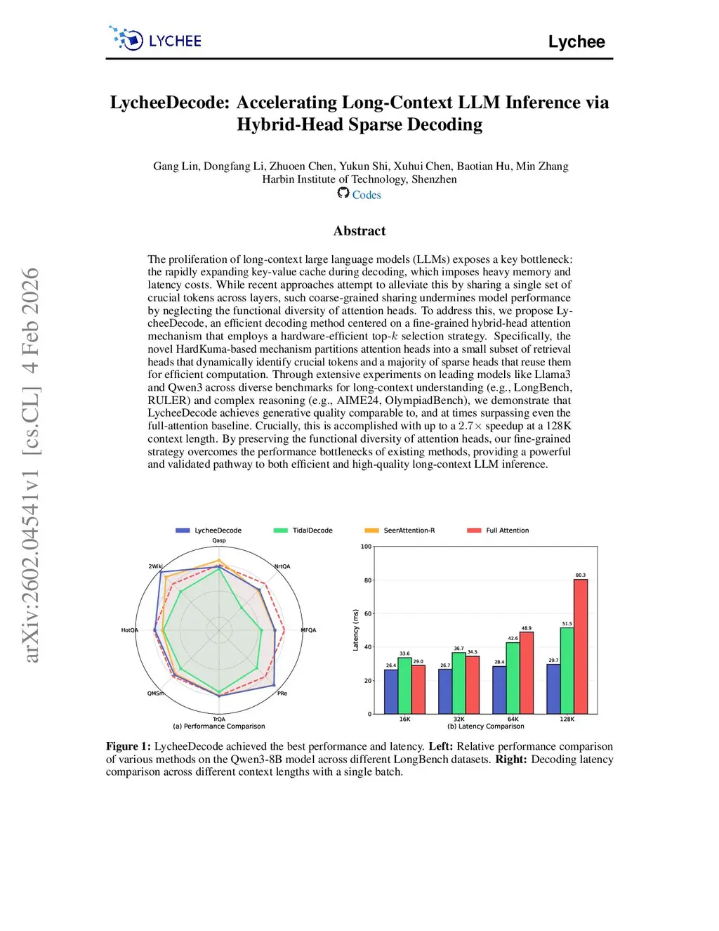 The proliferation of long-context large language models (LLMs) exposes a key bottleneck: the rapidly expanding key-value cache during decoding, which imposes heavy memory and latency costs. While recent approaches attempt to alleviate this by sharing a single set of crucial tokens across layers, such coarse-grained sharing undermines model performance by neglecting the functional diversity of attention heads. To address this, we propose LycheeDecode, an efficient decoding method centered on a fine-grained hybrid-head attention mechanism that employs a hardware-efficient top-k selection strategy. Specifically, the novel HardKuma-based mechanism partitions attention heads into a small subset of retrieval heads that dynamically identify crucial tokens and a majority of sparse heads that reuse them for efficient computation. Through extensive experiments on leading models like Llama3 and Qwen3 across diverse benchmarks for long-context understanding (e.g., LongBench, RULER) and complex reasoning (e.g., AIME24, OlympiadBench), we demonstrate that LycheeDecode achieves generative quality comparable to, and at times surpassing even the full-attention baseline. Crucially, this is accomplished with up to a 2.7x speedup at a 128K context length. By preserving the functional diversity of attention heads, our fine-grained strategy overcomes the performance bottlenecks of existing methods, providing a powerful and validated pathway to both efficient and high-quality long-context LLM inference.