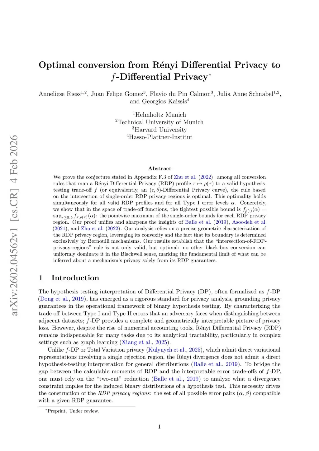 Optimal conversion from Rényi Differential Privacy to -Differential Privacy