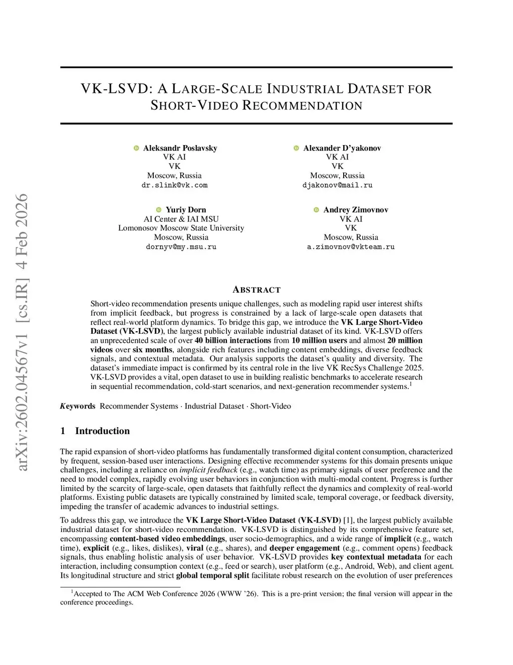 VK-LSVD: A Large-Scale Industrial Dataset for Short-Video Recommendation