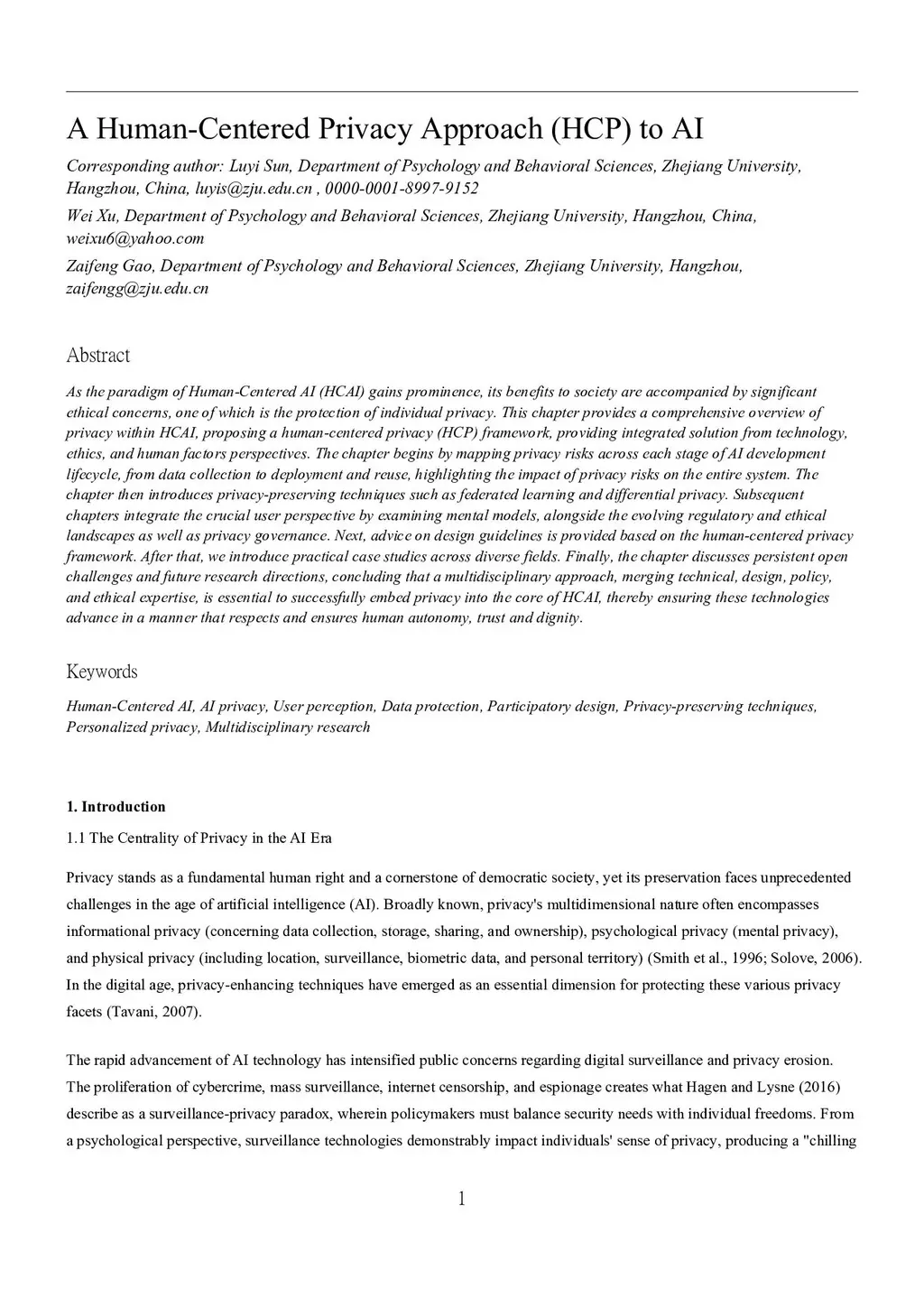 A Human-Centered Privacy Approach (HCP) to AI