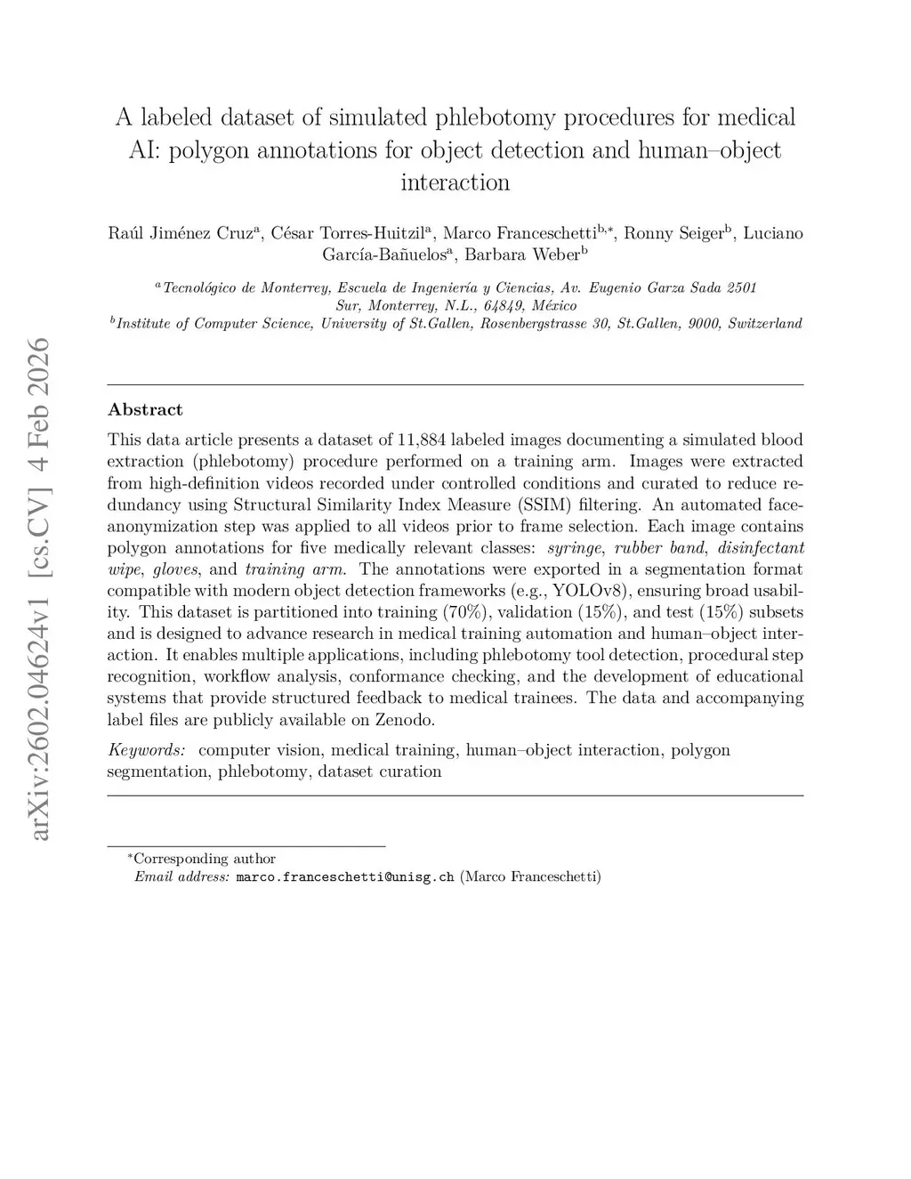 A labeled dataset of simulated phlebotomy procedures for medical AI: polygon annotations for object detection and human-object interaction
