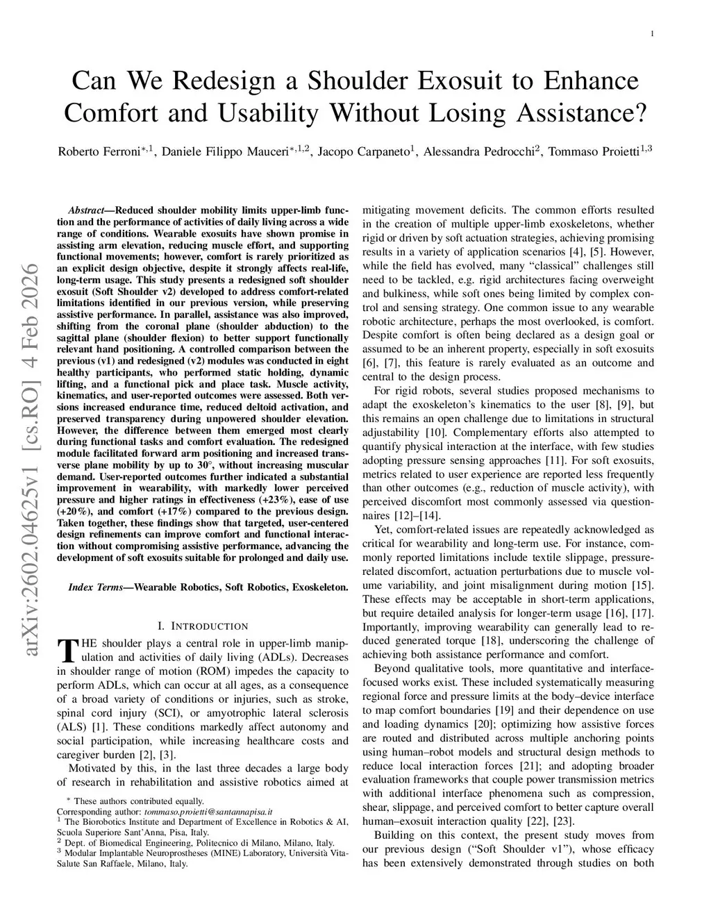 Can We Redesign a Shoulder Exosuit to Enhance Comfort and Usability Without Losing Assistance?