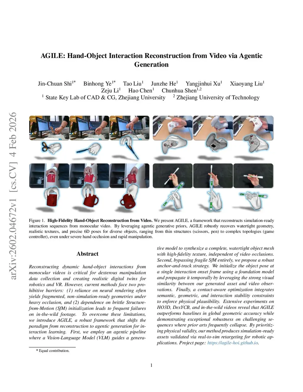 AGILE: Hand-Object Interaction Reconstruction from Video via Agentic Generation