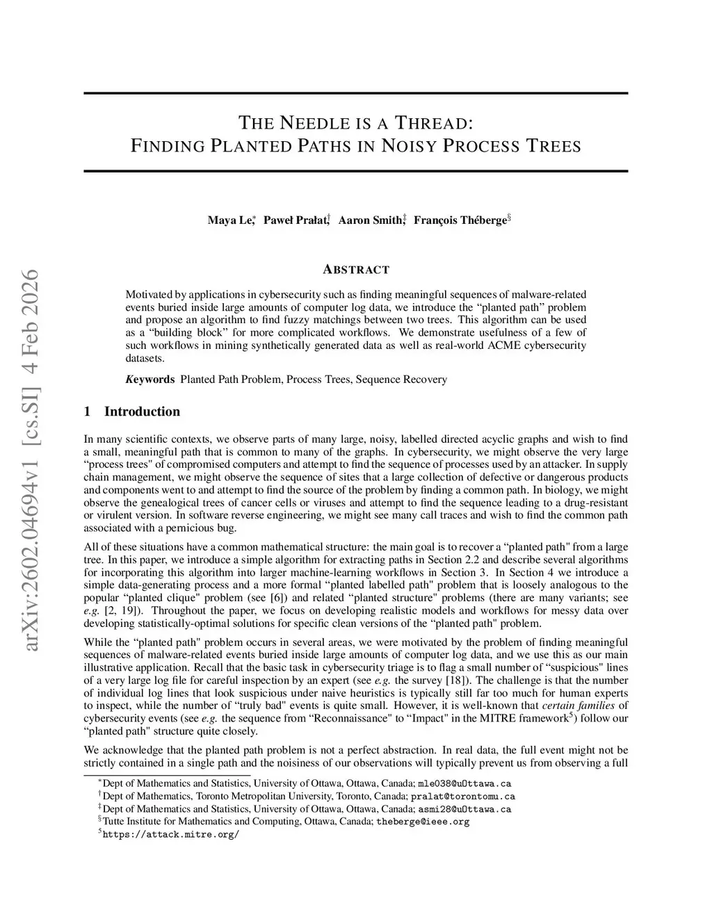 The Needle is a Thread: Finding Planted Paths in Noisy Process Trees