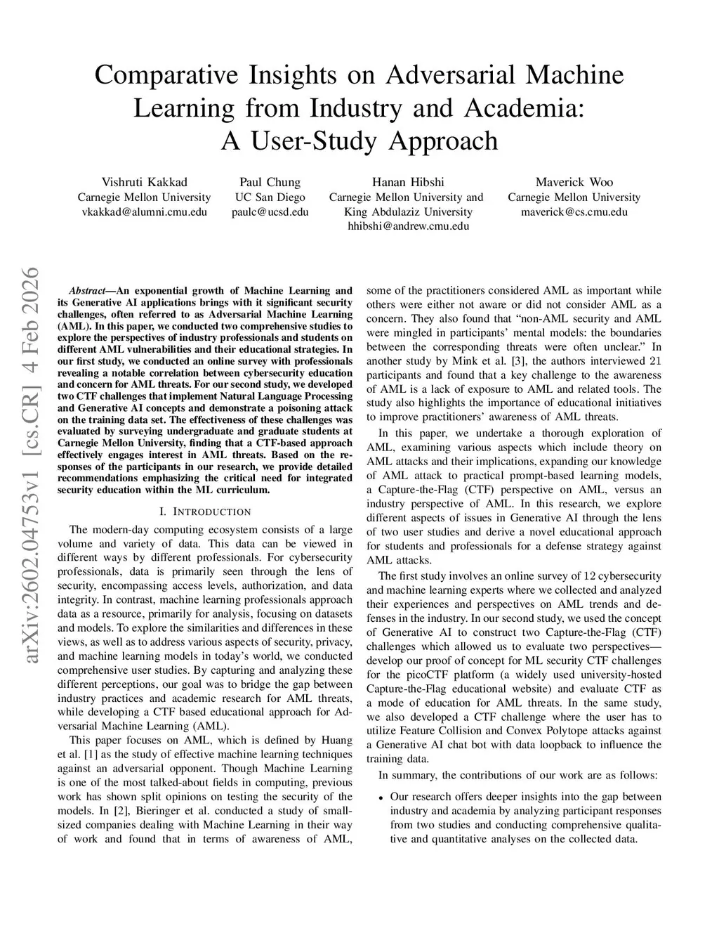 Comparative Insights on Adversarial Machine Learning from Industry and Academia: A User-Study Approach